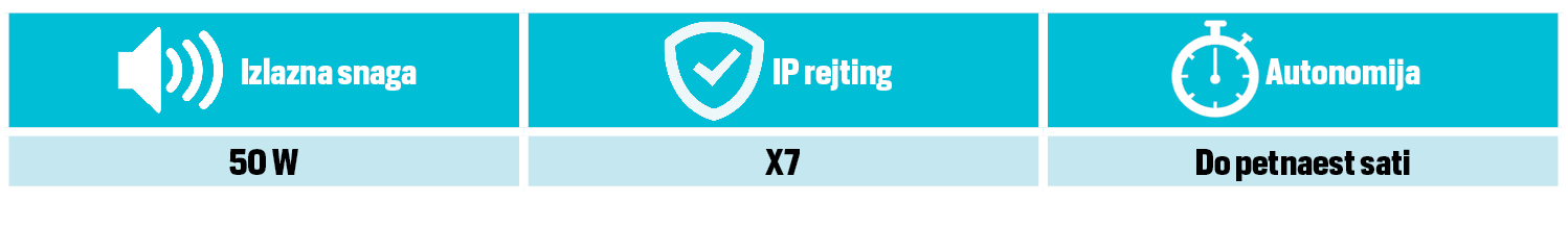 Baterija od 10.000 mAh traje oko 15 sati, ovisno, naravno, o glasnoći, dok joj za punjenje trebaju oko tri i pol sata. Pored utora za punjenje je zato USB izlaz kojim možete brzo puniti svoj mobitel, ako vam ponestane baterije na putu. Kao i ostali u ovoj generaciji zvučnika, Xtreme 2 je vodootporan s IPX7 rejtingom, što znači da može podnijeti sve osim uranjanja na dubine veće od metra, no bilo bi idealno kada biste i to mogli izbjeći jer, nakon svega, ipak nije tome namijenjen.