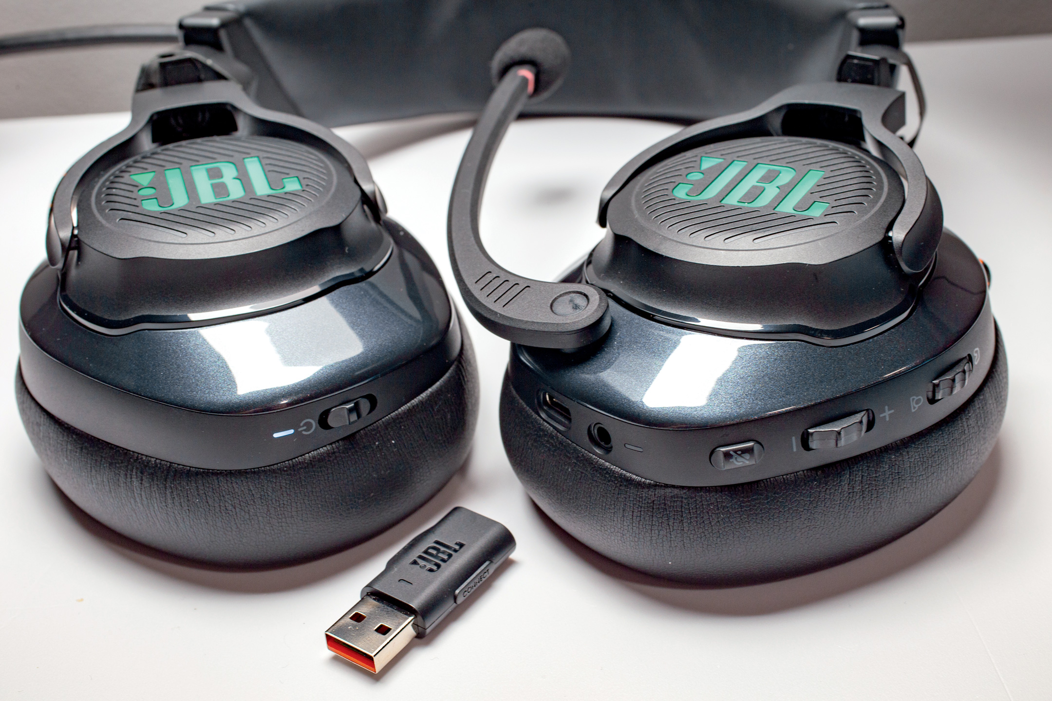 Gornji dio mosta je plastičan, no nudi solidnu razinu savijanja, dok je unutarnja strana ponovno opremljena solidnom spužvom prekrivenom umjetnom kožom za premium dojam. Desna slušalica ima prekidač za paljenje koji stoji u srednjoj poziciji i omogućuje slušalicama da odu u mod „spavanja“ kada ih ne koristite, a jednostavno ga ponovno povučete do kraja da se upale. Lijeva slušalica ima više opcija, gdje su osim USB-C utora za punjenje i 3,5 mm audio utor te gumb za gašenje mikrofona, iako se on gasi i kada ga fizički podignete. Tu su još dva valjka, gdje jedan kontrolira glasnoću slušalica, dok drugi kontrolira jedinstvenu funkcionalnost slušalica gdje se audio mijenja tako da se stišavaju sve frekvencije te u fokus dolazi ljudski govor. Tako imate opciju bolje čuti razgovore prijatelja na voice chatu dok igrate. U stereo načinu rada dobivate vrlo čist zvuk, s istaknutim dubljim tonovima za „življi“ doživljaj i naravno, efektivnije eksplozije i akciju u igrama. No, cilj slušalica je da vam dočara odličan surround efekt. Za to će vam biti potreban JBL QuantumENGINE softver koji osim detaljnih EQ postavki za prilagodbu zvuka vlastitim željama, nudi opcije prostornog zvuka u obliku DTS:Headphone X 2.0 standarda ili pak JBL-ovog vlastitog rješenja koje preuzima podatke s Windowsa gdje u postavkama također morate postaviti 7.1 izlaz, a te podatke onda JBL pretvara u surround iskustvo koje također možete optimizirati na temelju željene veličine virtualnog prostora, kao i prema vašoj veličini glave.