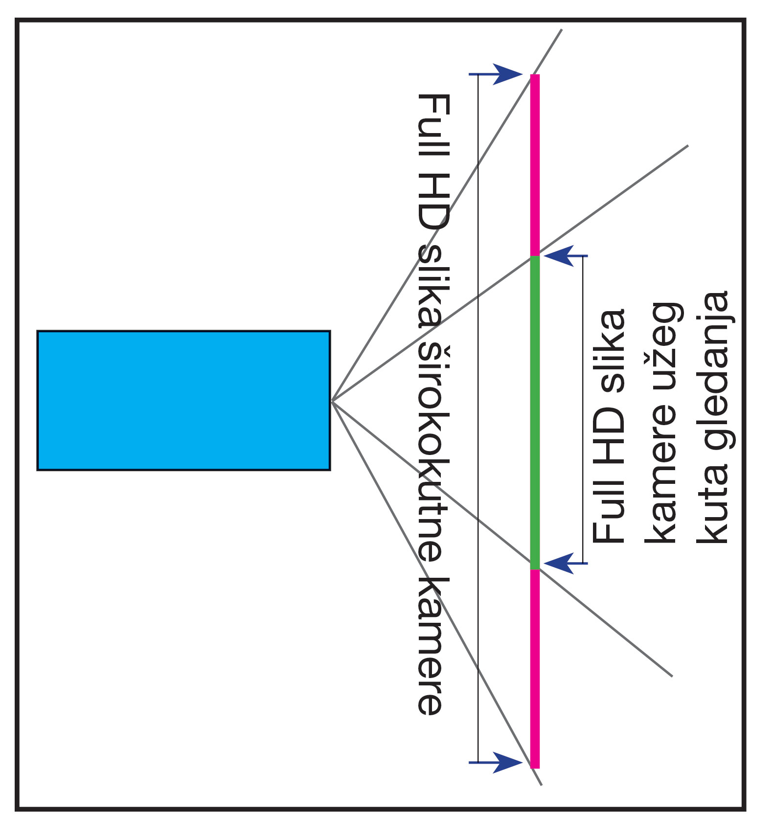 Kamera je Full HD rezolucije i kuta gledanja od 75°, što je idealno kada želite nadzor nekog udaljenijeg područja. U odnosu na širokokutne kamere, ova će djelovati kao da ima neki zoom faktor, jer će prividno približiti objekte.
