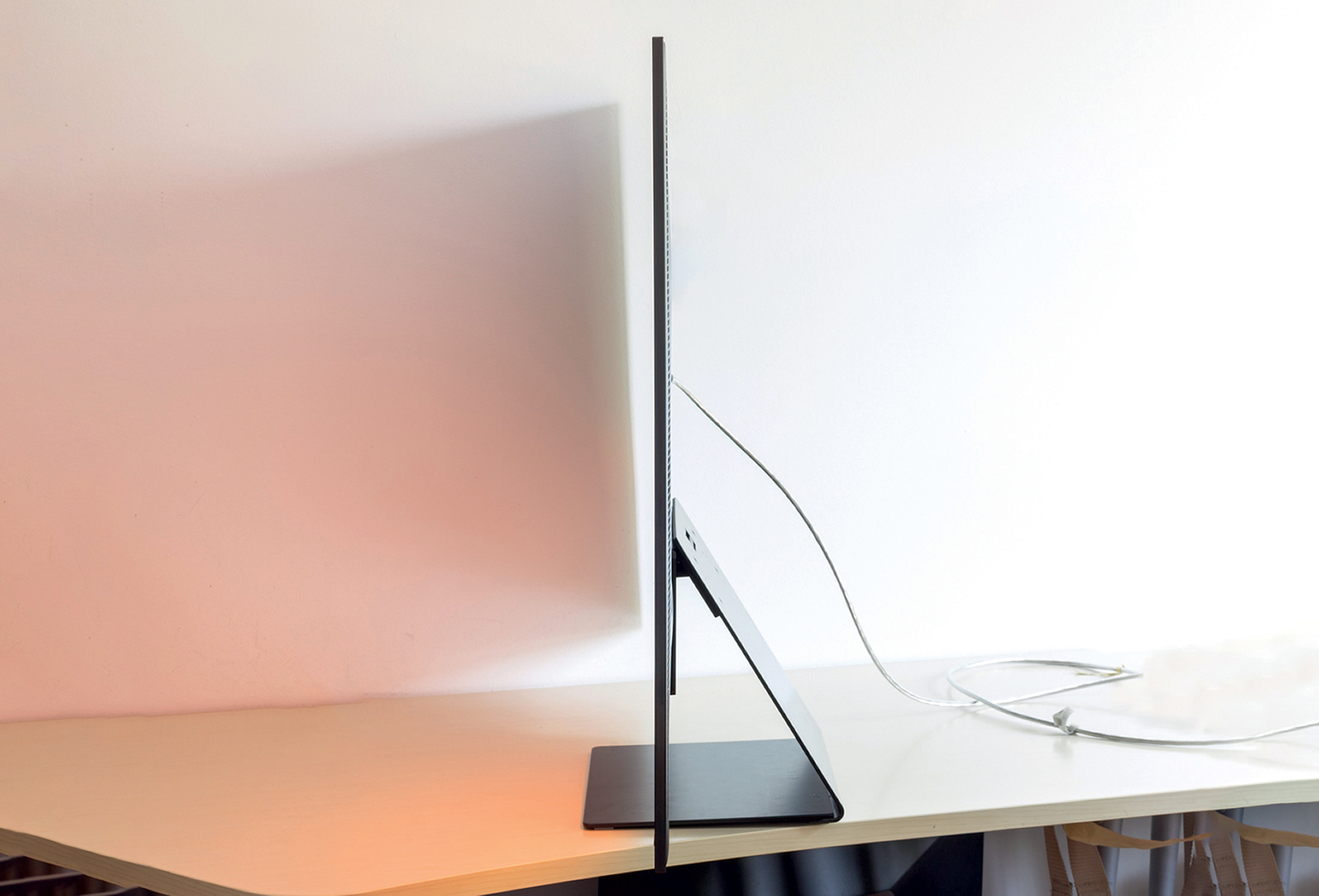 Stražnja strana sasvim je ravna, a televizor cijelim tijelom ima debljinu od 1,1 centimetra. To su postigli tako da “mozak” televizora (kutija sa svim konektorima, procesorom i ostalim detaljima) dolazi odvojeno od samog ekrana.