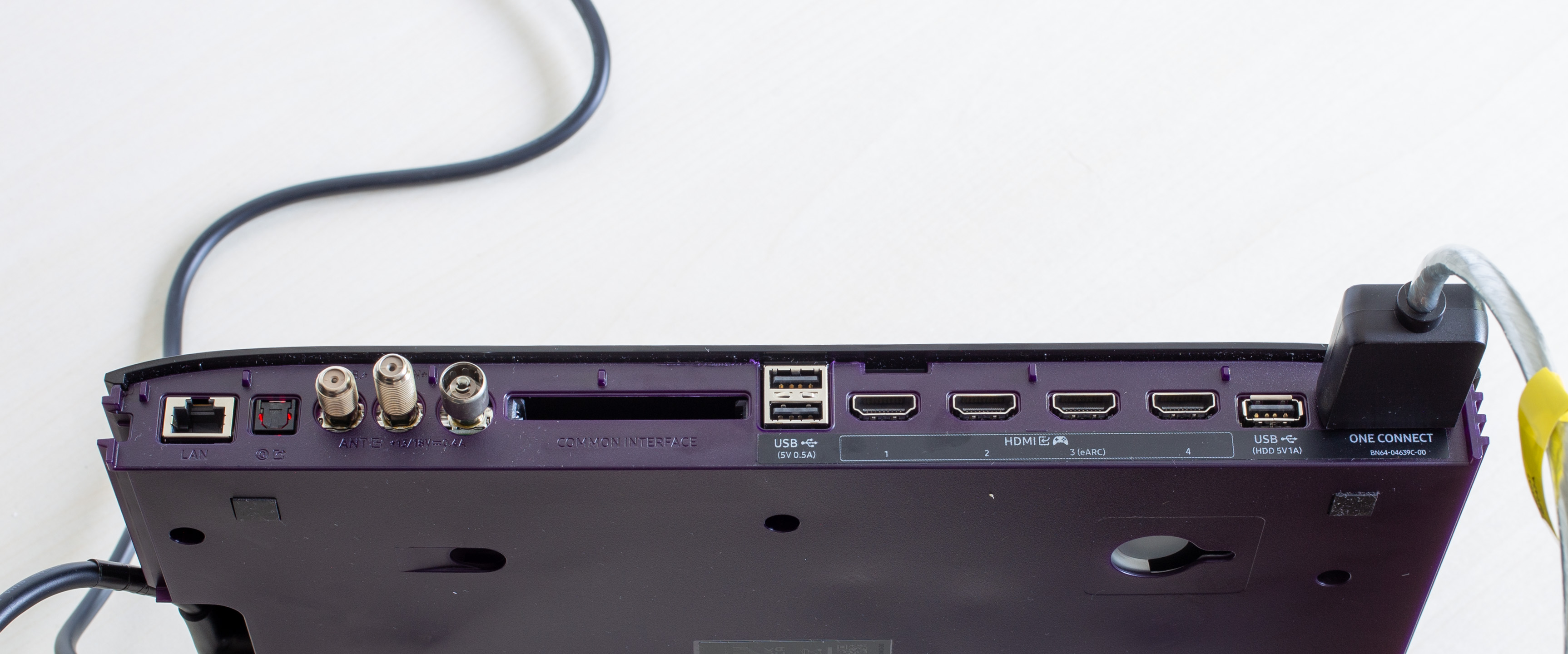 Tu su tri USB-A i jedan USB-C utor, Ethernet, digitalni audio i CI utor. Dodatno imate i RF ulaze za zemaljsku antenu ili kablovsku televiziju. Od bežičnih tehnologija, imamo Bluetooth 5.2 te WiFi 5 standarde. Podržan je i Anynet+, a sve ide preko spomenutog One Connect Box sustava odvojenog od samog ekrana, pa dobivate i jedinstveni konektor i dvije žice da kutiju povežete sa ekranom. Kraća žica je ako će kutija biti blizu ekrana, kao na primjer na stalku, a dulja ako ćete TV montirati direktno na zid.
