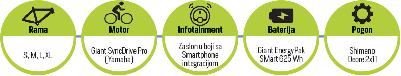 Bicikl dolazi u četiri veličine od M do XL modela tako da postoji verzija za svakoga, a dolazi s detaljima koje nećete naći standardno na MTB modelima koji uključuju integrirani nosač za nogar, prednje i stražnje svjetlo te nosač tereta straga za pričvršćivanje torbe i košara. Sam pogon je ponovno u sredini bicikla integriran u sustav pedala, a riječ je o Giantovom SyncDrive Pro motoru od Yamahe. Kako smo spomenuli, u ovoj izvedbi pomaže vam brzinama do 45 km/h, no i dalje neće prelaziti snagu od 250 W tako da ćete morati i vi raditi zajedno s njime. No puno ste dinamičniji u prometu tako da ne smetate drugima, ali treba imati na umu da ste na cesti i dobro razumjeti sve znakove, kao i pravilno ponašanje biciklista na cesti.