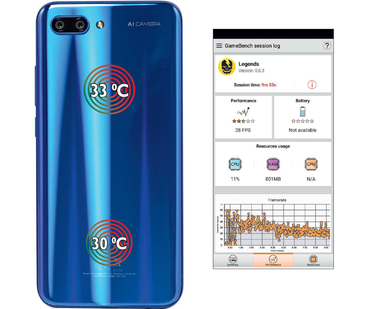 Termalnim performansama Honor 10 nije nas oduševio jer mu se kućište tijekom igranja osjetno ugrijalo, što zajedno s njegovim staklenim kućištem čini igranje prilično neugodnim jer potiče znojenje. Relativno loša autonomija je nepovoljna za intenzivnije igranje te je Honor 10 najbolji izbor za umjereno igranje, gdje će njegove vrline nadjačati lošu autonomiju. Iako ima odličan chipset, za svako intenzivnije igranje koje će u potpunosti iskoristiti isti morati ćete posegnuti za punjačem.