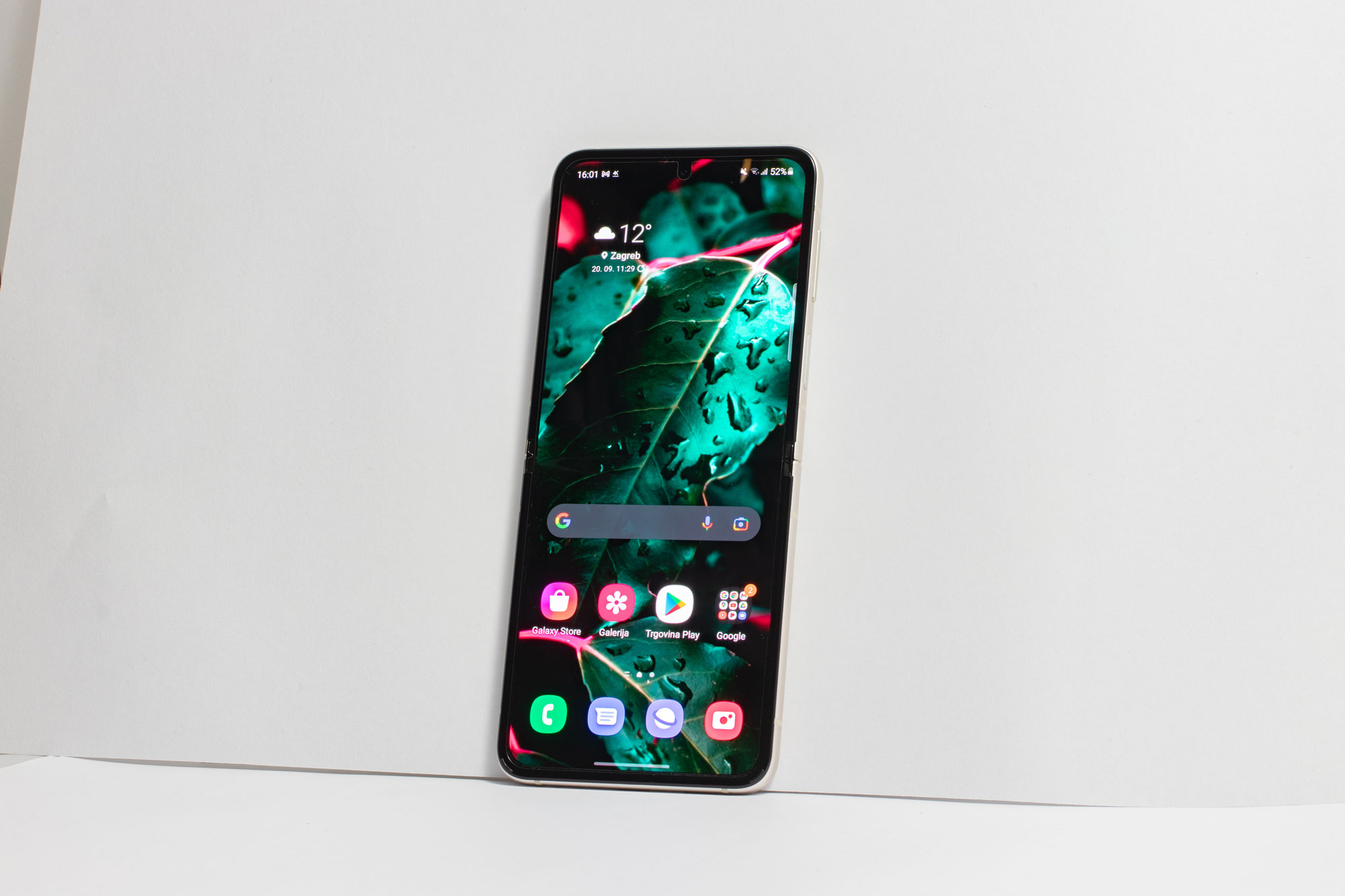 Sam AMOLED je nadograđen na Dynamic verziju koja ima osvježavanje do 120 Hz, te mu je značajno poboljšana svjetlina, do 1200 nita. I dalje je riječ o FullHD+ rezoluciji, a dijagonala također ostaje iste veličine od 6,7 inča. Mobitel se može savinuti do bilo koje razine, a ne da ga koristite samo potpuno otklopljenog ili zaklopljenog. Možete ga staviti na bilo koju površinu i usmjeriti gornji zaslon prema sebi kako biste gledali film ili vodili videorazgovor bez držanja mobitela u rukama ili naslanjanjali na kojekakve predmete. Unutarnji zaslon i dalje ima “plastičan” osjećaj pod prstima te se udubljenje na sredini zaslona osjeti, no kao ni na prošlom modelu to nas nije pretjerano uznemiravalo.