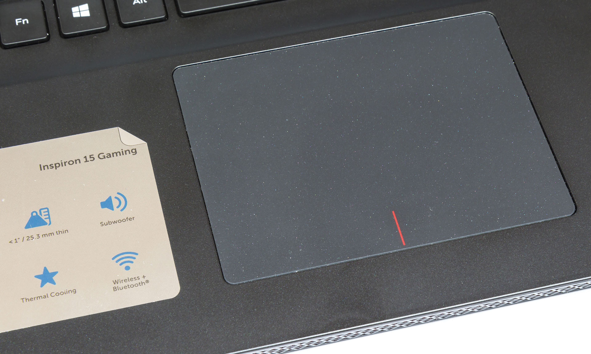 Vratimo se na trenutak na dizajn. Prevladavajuća boja je crna, a na relativno čvrstom poklopcu ekrana nalazi se crveni Dell logo. Na bazi računala s prednje strane se cijelom duljinom proteže crvena rešetka koja skriva zvučnike. S donje strane s tim zvučnicima surađuje subwoofer. U unutrašnjosti za gaming odlično paše gumirana podloga, a osim pozadinski osvijetljene tipkovnice, veliki touchpad je podijeljen malom crvenom crticom. Možemo reći da je dizajn ujednačen i da se prati ta gaming tema.