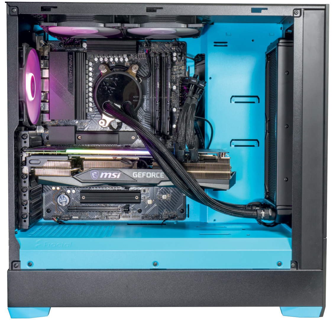 Unutrašnjost ovog računala vrlo je uredna i sve je na svome mjestu, a ugrađeno je ukupno pet RGB ventilatora koji omogućuju dobro hlađenje i doprinose atraktivnom izgledu.