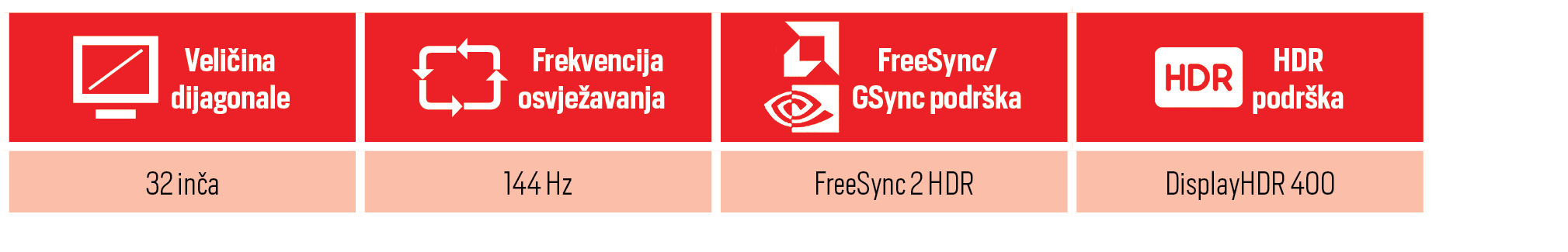 Ovakve mogućnosti svakako ga čine poprilično primamljivim za sve gamere. Svemu doprinosi i veličina dijagonale od 32 inča te moderan dizajn i odlična ergonomija. Također WQHD rezolucija (1440p) znači kako vam neće trebati najbrža i najmoćnija grafička kartica kako biste iskoristili sve mogućnosti ovog monitora.