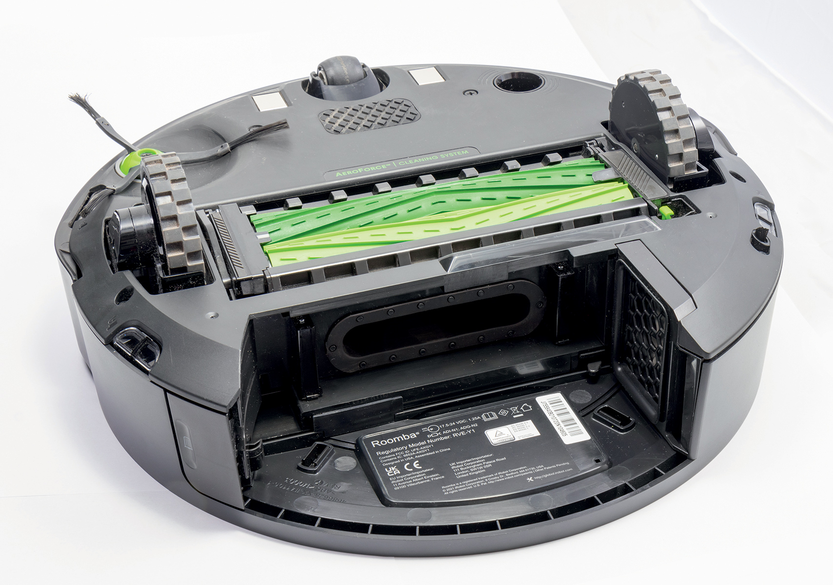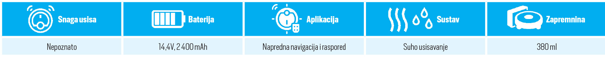 Pogledamo li robot odozdo, možemo primijetiti da je na rubovima čak šest senzora za detekciju bridova kako se ne bi prevrnuo ili pao niz stepenice. U sredini su dva već poznata, patentirana valjka za superiorno skupljanje prašine i ostalih nečistoća (čak iz dubljih tepiha) kojima će rezultati čišćenja na svim površinama biti odlični.