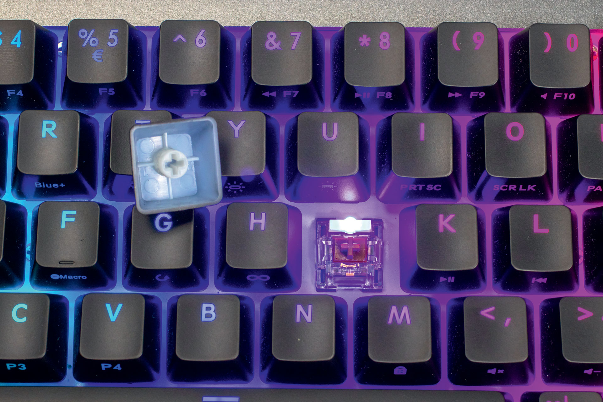 Tipkovnica dolazi u crnoj ili bijeloj boji, a CoolerMaster koristi standardne Cherry MX switcheve za ovaj model i to u crvenoj linearnoj, plavoj kliktavoj i smeđoj taktilnoj verziji. Mi smo na testu imali taktilnu verziju s prepoznatljivim iskustvom tipkanja koje vam pruža dodatnu fizičku reakciju gumba na pritisak bez glasnoće tako da je tipkovnica i dalje pristojna za korištenje i u uredskim uvjetima.