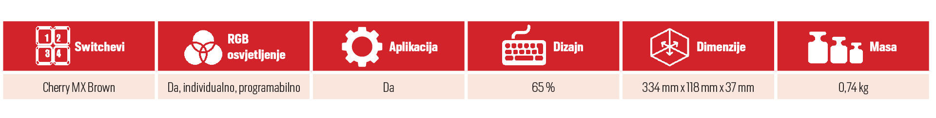 Zato je CoolerMaster proizveo kompromis u obliku 65 % tipkovnice koja ipak zadržava navigacijske gumbe, kao i delete i još par bitnih tipki, a našlo se mjesta i za pravi veliki valjak kojim se između ostalog kontrolira glasnoća sustava. Kako smo već rekli, ako ste se navikli na neki od dizajna ovakvog valjka do sada. Teško da ćete se prebaciti na model tipkovnice koji ga nema jer vrlo brzo postaje integralni dio vaše audio navike.