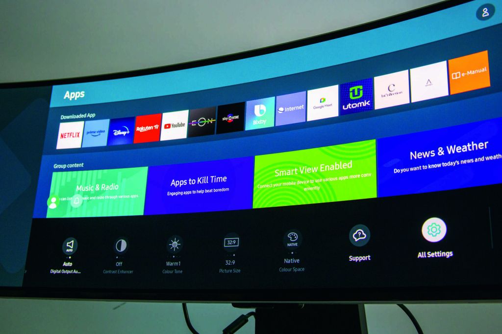 S obzirom na korištenje Samsungovog softverskog sučelja Tizen, mogli bismo novi G9 prozvati „pametnim“ monitorom. Zapravo je negdje između monitora i televizora. Pritom sve postavke, izgled izbornika i sam izbornik izgledaju istovjetno onima koje nalazimo kod Samsungovih televizora. Ovo ima svoje dobre i loše strane. Ako ste navikli na klasične izbornike koje nalazimo kod drugih monitora, ovdje ćete se teže snaći. S druge strane, opcija za podešavanje slike ima zaista mnogo i lako su dostupne putem daljinskog upravljača. Prije svega je preporuka odabrati Game način korištenja koji automatski uključuje i frekvenciju osvježavanja slike od 240 Hz, opcije za smanjenje ulaznog kašnjenja i podršku za Adaptive Sync.