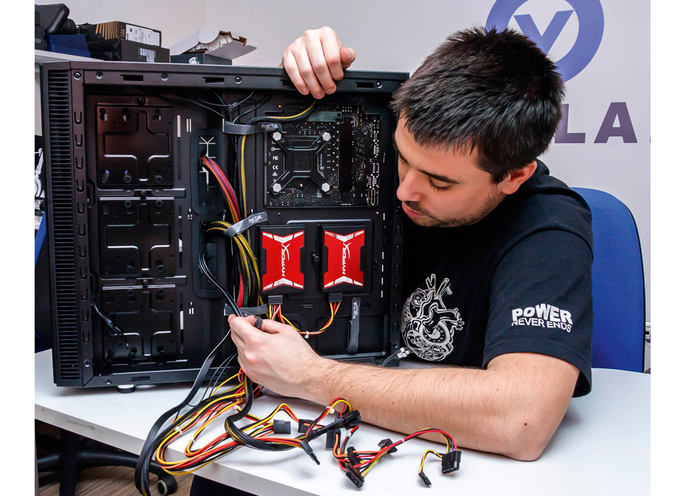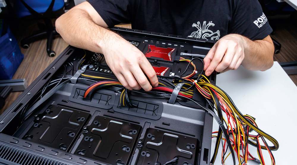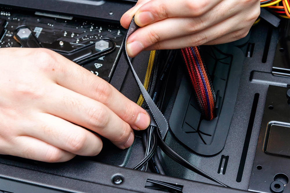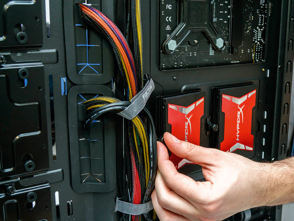 5. Utegnite sve kablove unutar kućište, maksimalno ih skratite s unutarnje strane kućište, a višak zavežite sa stražnje strane. Kako mali broj kućišta dolazi s velcro vezicama, slobodno se poslužite plastičnim, samo pripazite – kad ih zategnete, više nema povratka. Većina kućišta dolazi s “točkama sidrenja” za vezice, tako da možete računati na njihov doprinos organizaciji kablova.