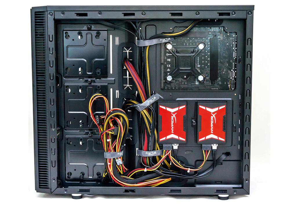 3. Nakon ili tokom prethodnog koraka možete instalirati i sve diskove koji idu sa stražnje strane. Dobar dio modernih i nešto boljih kućišta ima 2,5” nosače diskova, a Fractalovo Define S ima ležišta čak i za 3,5” diskove.