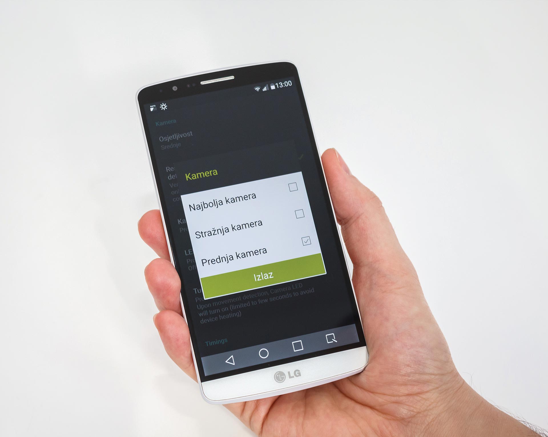 3. U postavkama ćete pronaći razne opcije, a prva koja će vas interesirati jest “Kamera”. Imate li prednju i stražnju kameru, u opcijama možete odabrati koju će od njih dvije aplikacija koristiti. Prednja kamera je uglavnom nešto slabije kvalitete pa se kao logično rješenje nameće korištenje stražnje kamere.