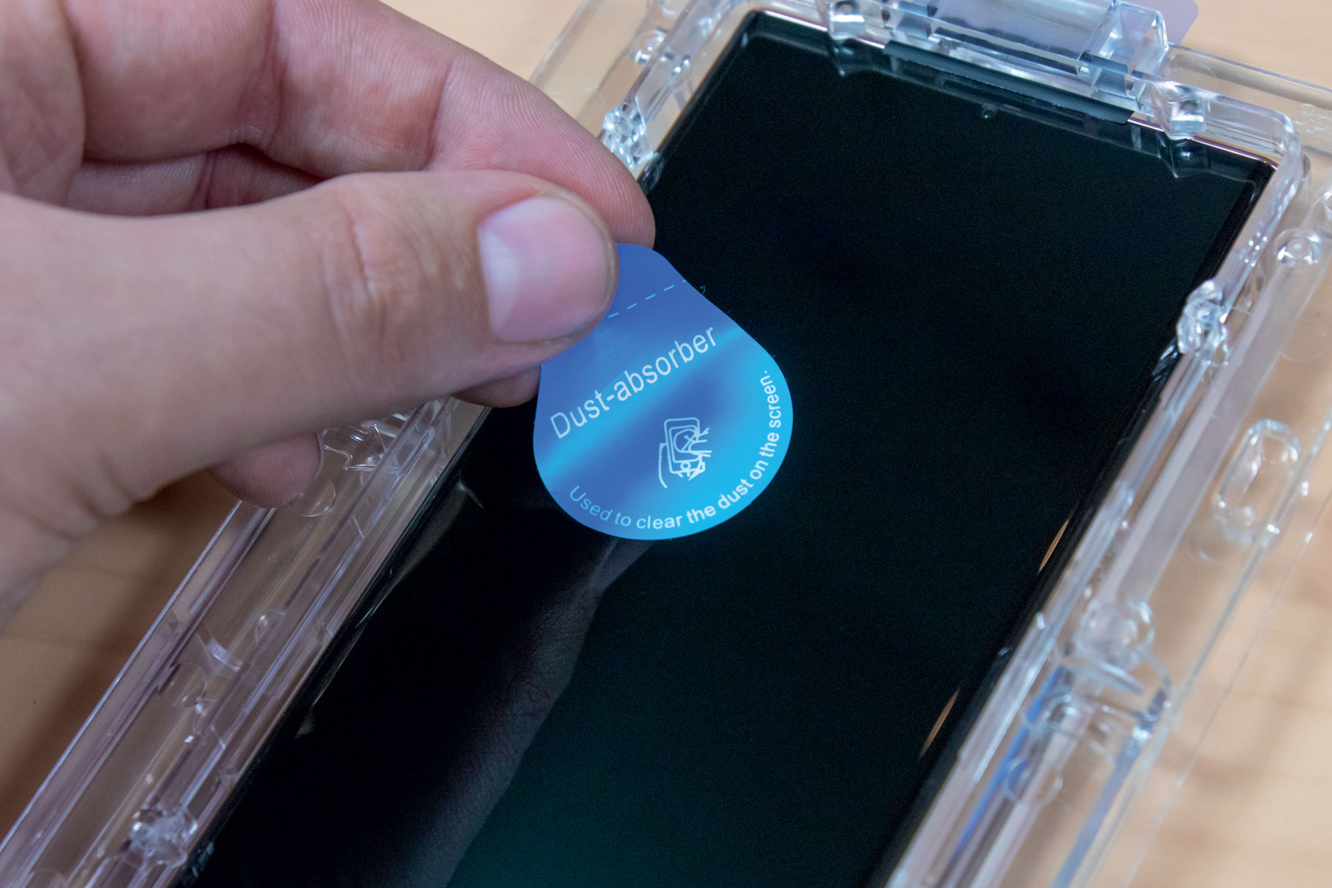 5.) Dobili ste i malenu naljepnicu kojom možete proći po zaslonu kako biste maknuli i zadnje točkice prašine s njega. Računamo da ste prije postavljanja zaslon mobitela očistili od packi, idealno krpom od mikrovlakana (mikrofibre), možda i uz dodatak alkohola, za koji pričekajte da ishlapi. Čim završite ovaj korak, bilo bi idealno što prije krenuti u akciju da se ne nakupi prašine na zaslonu prije nego stavite zaštitno staklo.