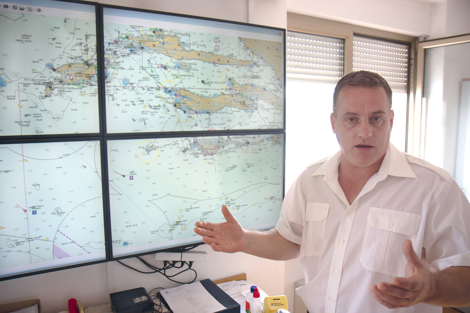 „To su važni podaci kad izdajemo nalog za sidrenje, jer na svakoj vrsti tla sidro drugačije drži“, ističe Davor Filipović koji nam je rekao da je njihov glavni posao nadzor i upravljanje pomorskim prometom u skladu sa zakonskim propisima i međunarodnim konvencijama.