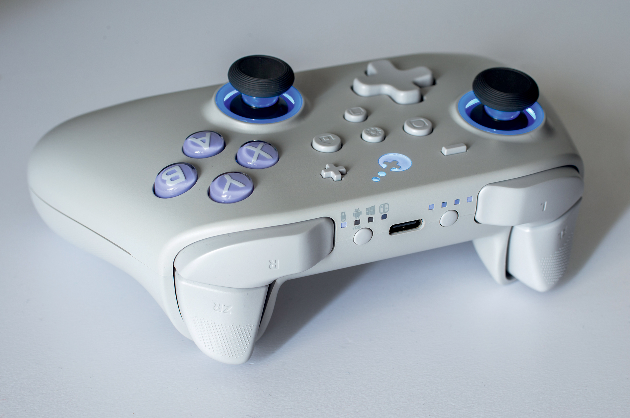 Ovaj efekt funkcionira, no morat ćete se naučiti njime koristiti za optimalnu igru, jer morate držati i dodatan gumb kako bi bio aktivan. Zatim imamo sekundarne gumbe od kojih su dva oko USB-C utora za punjenje te služe za prikaz stanja kontrolera, kao i trenutnog moda povezivanja. Kontroler se Bluetooth načinom rada može povezivati sa Nintendo Switchem, PC računalom ili Android/iOS uređajima (što uključuje tablete, Android televizore, mobitele i druge uređaje).