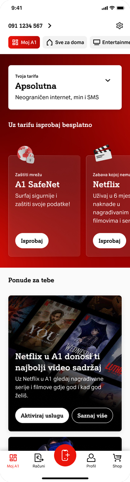 Moj A1 aplikacija objedinjuje sve usluge A1 na jedno mjesto i olakšava jednostavno upravljanje telekomunikacijskim paketima kroz personalizirano korisničko iskustvo.