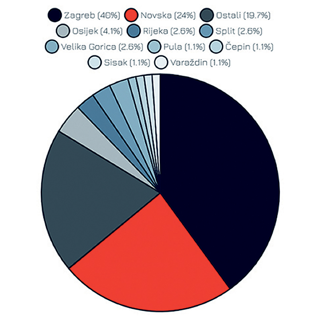 Osim demografije, analiza prati i regionalnu rasprostranjenost, koja je vrlo centralizirana u Zagrebu - čak pola svih pravnih osoba za videoigre je u Zagrebu, još 15% u Novskoj, i oko trećina u ostatku Hrvatske.