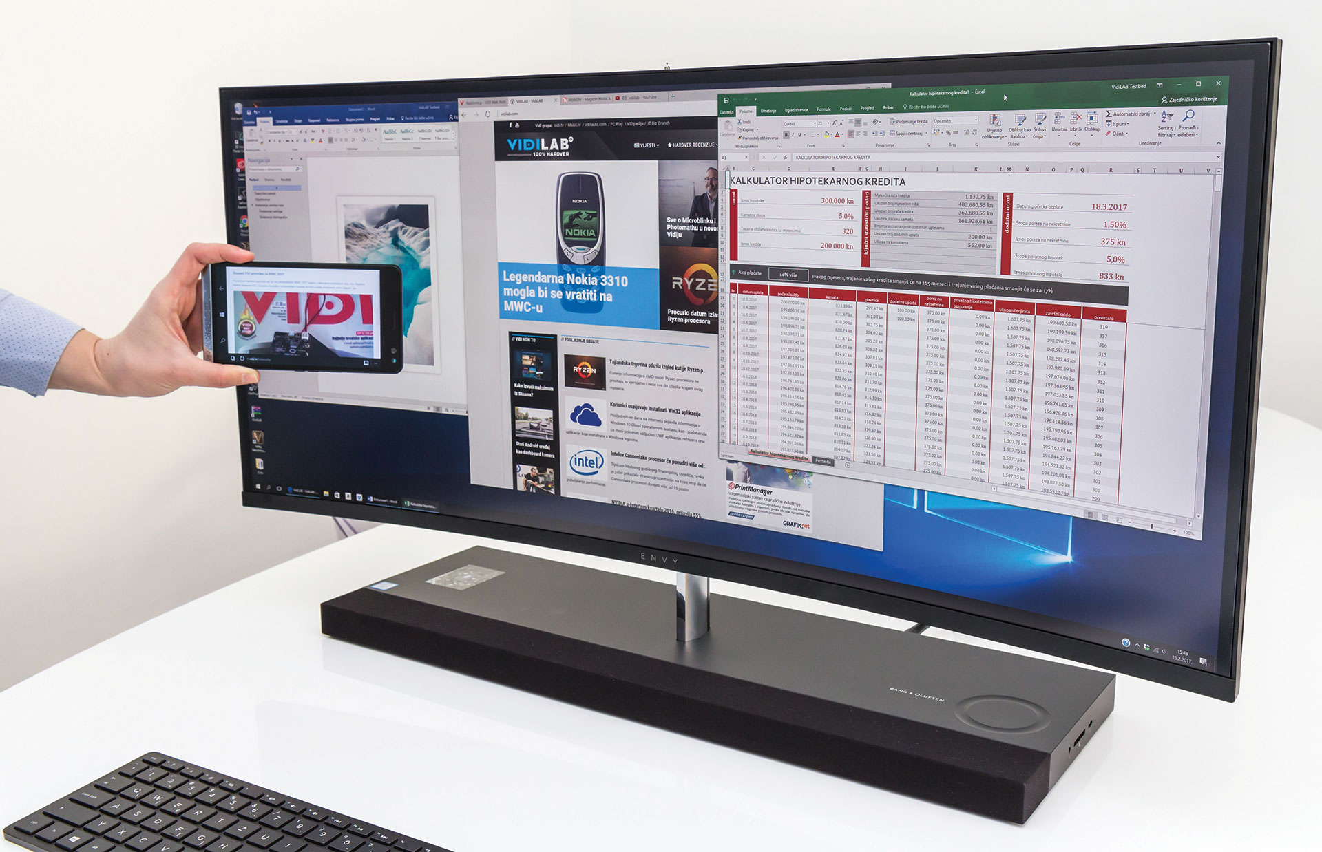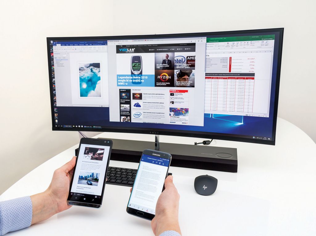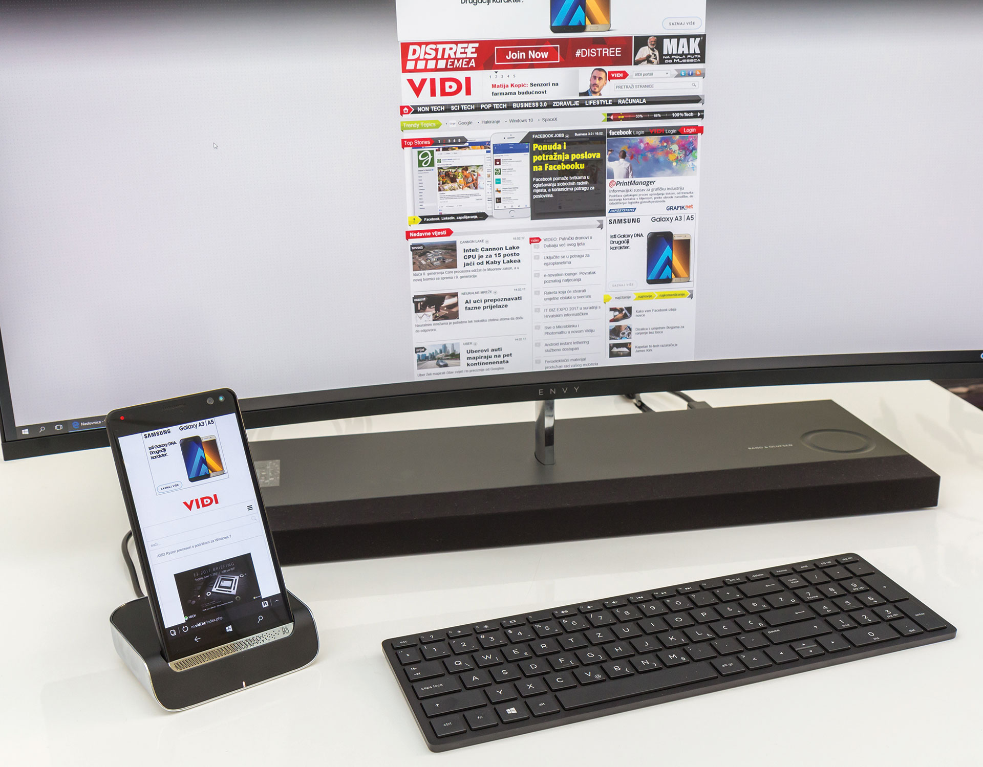 Kad više nismo imali strpljenja ni živaca da nastavimo rad na malom ekranu, stavili smo HP Elite X3 u Continuum sidrište i spojili ga s monitorom te ostalom računalnom periferijom. Unatoč ograničenjima (nemogućnost stavljanja više prozora na jedan ekran, određene aplikacije ne rade na velikom ekranu) i slabijim performansama (na mobitelu nema laga prilikom skrolanja, ali na monitoru da), rad na velikom ekranu umnogome nam je olakšalo zadatke poput pisanja. Microsoft je od zadnjeg puta kad smo koristili Continuum platformu dodao prečace (Ctrl+A/C/P i dr.), što nam je dodatno pomoglo. HP Elite X3 zapravo ima sve što očekujemo od phableta: veliki, svijetli ekran, odlični zvučnike, dobre performanse, izdržljivu bateriju te mogućnost spajanja na Continuum. Skoro je pa savršena zamjena za laptop. Međutim, ima jednu ozbiljnu boljku – zastarjeli i slabo podržan operativni sustav. Isključivo radi toga „u hodu“ nam se više svidio brži Samsungov Galaxy S7 Edge, koji se može podičiti pristupom bogatoj trgovini aplikacija.