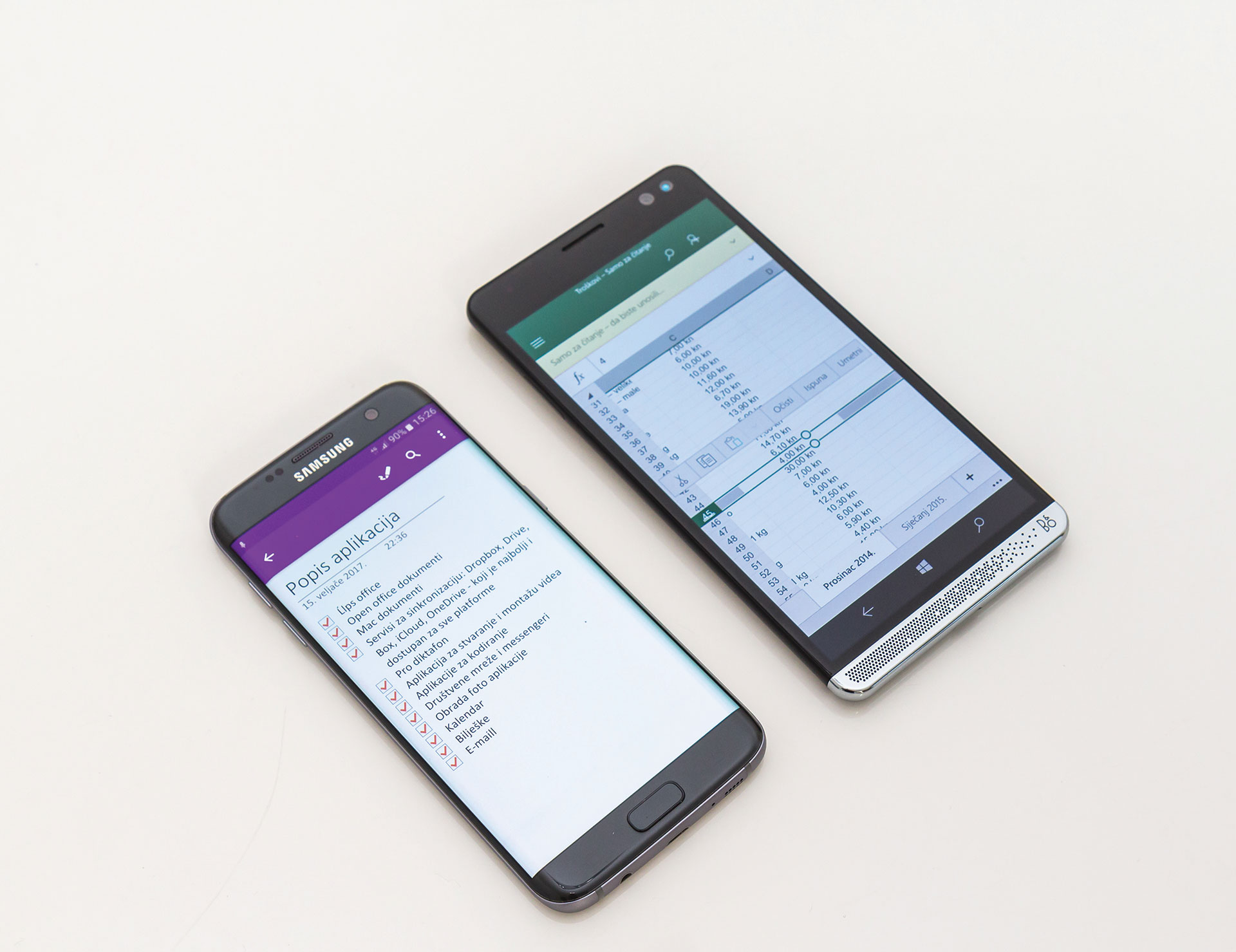 Samsung Galaxy S7 Edge, u nedostatku Notea 7, poslužio nam je kao Android phablet. Galaxy S7 Edge ima samo 5,5 inča (očekivani standard veličine ekrana za phablete brzo je narastao s originalnih 5,3 na 6 inča), ali zato ima moćni hardver koji ne štuca pri korištenju 20-ak aplikacija. Qualcomm Snapdragon 820 i 4 GB RAM-a brinu se za fluidan rad. Usto, mobitel je opremljen s 32 GB interne memorije i baterijom od 3600 mAh-a. HP Elite X3 pružio nam je phablet iskustvo na Windows 10 platformi s istim procesorom i količinom RAM-a, ali većim ekranom (6 inča), više interne memorije (64 GB) te boljom baterijom (4150 mAh). Jedna od najvećih prednosti HP Elitea X3 je u tome što se po potrebi, putem Windows Continuum sidrišta (dock), može spojiti sa monitorom, mišom, tipkovnicom i ostalom, standardno računalnom, periferijom.