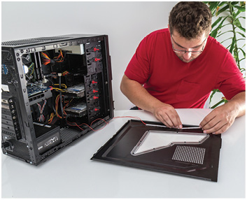 Prvi problem na koji nailazimo jest nakupljena prašina. Ona neće uzrokovati kolaps sustava, no ključne komponente s aktivnim hlađenjem postižu visoke temperature, pogotovo u ovim ljetnim danima, stoga ih sustav “oslabljuje” kako ne bi došlo do pregrijavanja. Ovaj problem, naravno, nije novost i uz malo truda lako se riješi. Kratak pogled na kućište i jasan je uzrok. Velik broj otvora kroz koje prašina ulazi te jedan ispušni ventilator za kućište. Problem koji tu nastaje naziva se negativan pritisak unutar kućišta, što znači da zrak koji ventilator izbaci ulazi kroz sve male otvore dovodeći prašinu sa sobom. Jednostavno rješenje instalacija je usisnog ventilatora, tradicionalno s prednje strane računala, koji je jači od ispušnog ventilatora. Osim toga, može se ugraditi jedan veći ili dva usisna veličine ispušnog, kako bi količina zraka koji ulazi bila veća od one koju ispušni ventilator može izbaciti. Tako dobivamo pozitivan pritisak unutar kućišta te će višak zraka izlaziti i kroz male rupice na kućištu, onemogučujući prašini da kroz njih uđe. Zadnji je uvjet svakako filter prašine kod usisnih ventilatora, koji naše kućište već ima. I dok sve zvuči kao puno mudrovanja, problem se riješi za sto kuna.