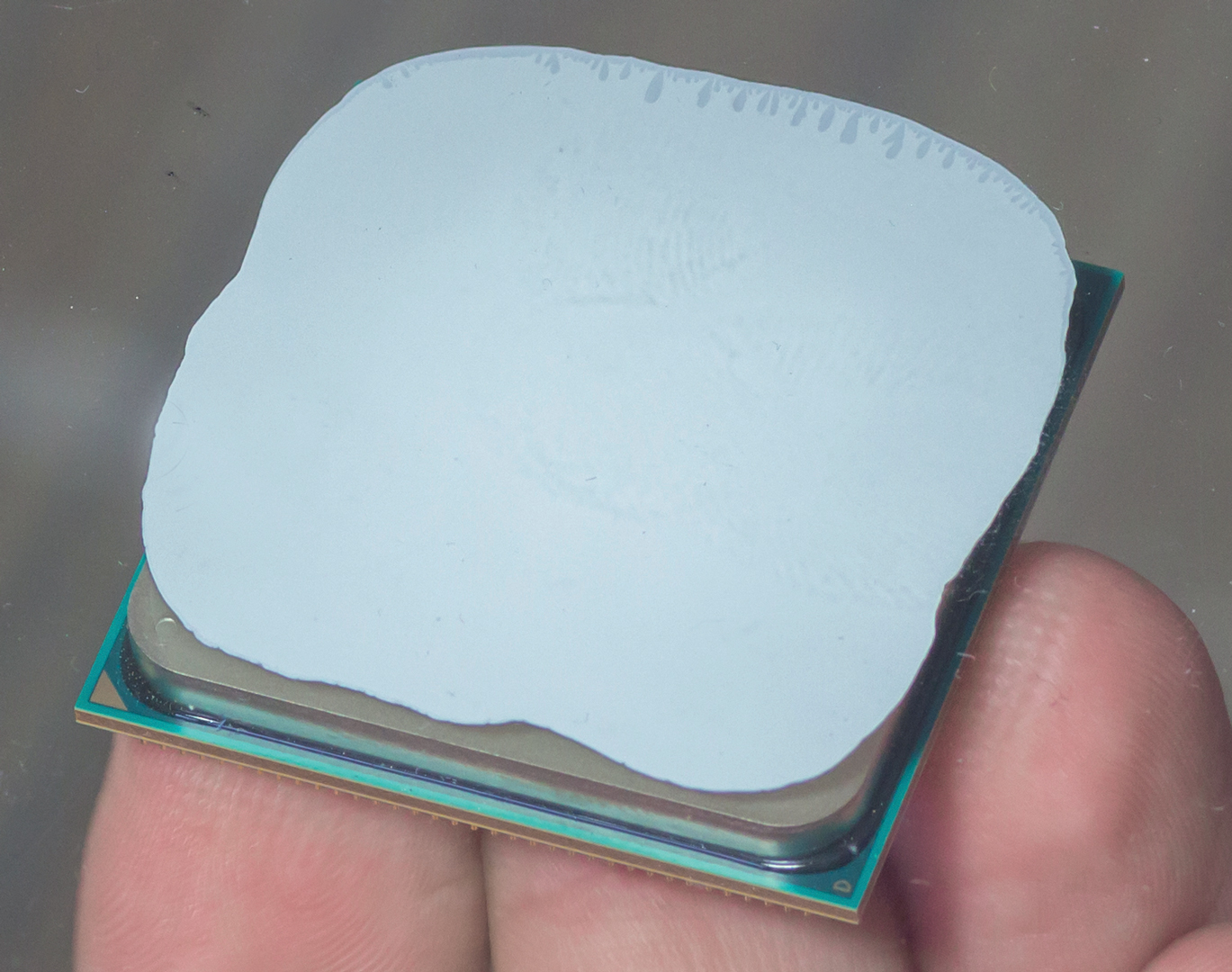 Najbolja opcija za nanošenje termalne paste je kapljica paste u sam centar procesora, otprilike velika poput zrna riže.