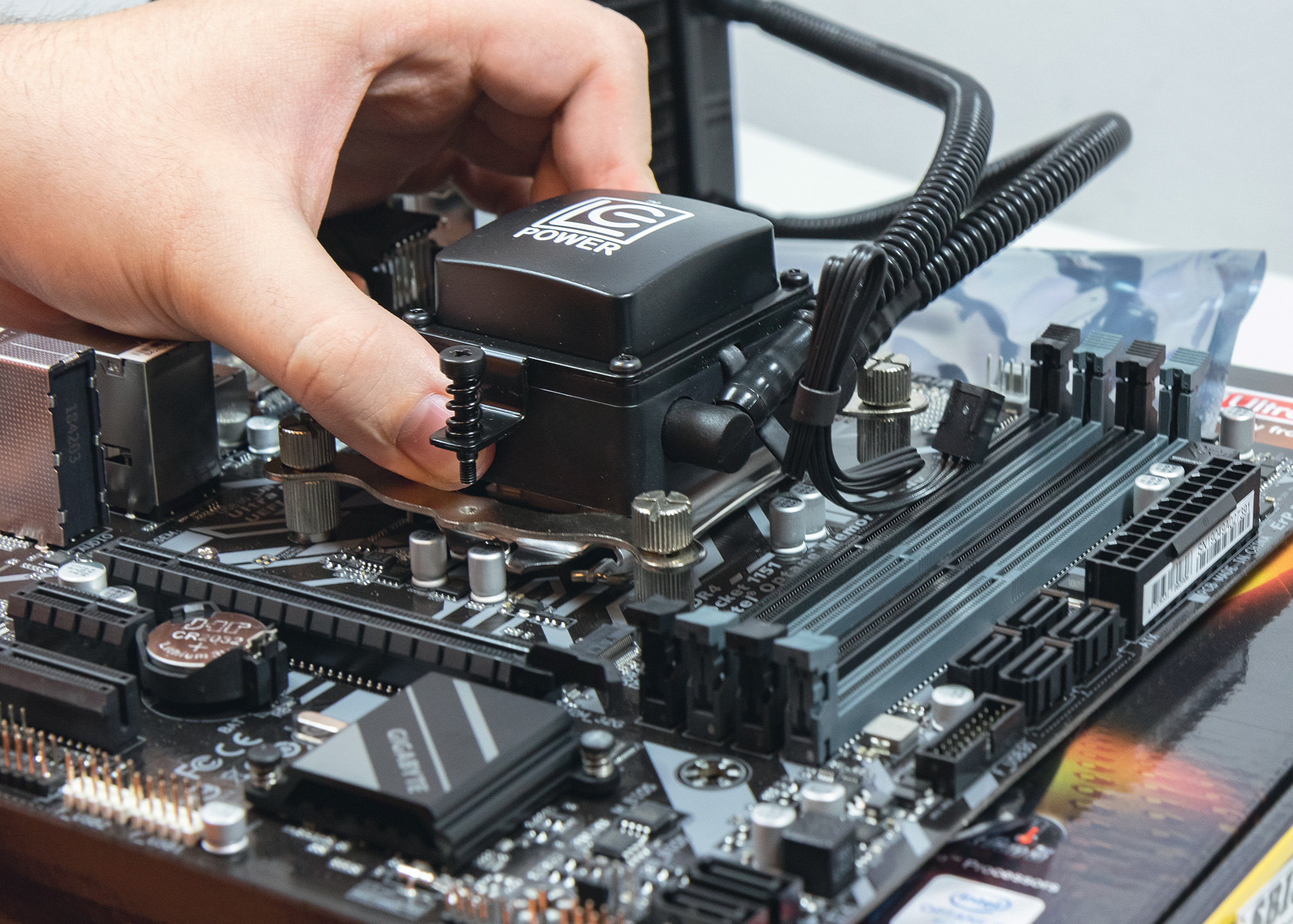 Naš odabrani hladnjak, LC-CC-120-LiCo je AIO (all-in-one) vodeni hladnjak, stoga se njegovo postavljanje vrši u tri koraka. Prvo blok s integriranom pumpom pričvrstimo na ploču, potom ventilator pričvrstimo na radijator i u konačnici radijator pričvrstimo na kućište. Nakon postavljanja komponenti potrebno je na ploču spojiti pumpu i ventilator kako bi hladnjak bio funkcionalan.