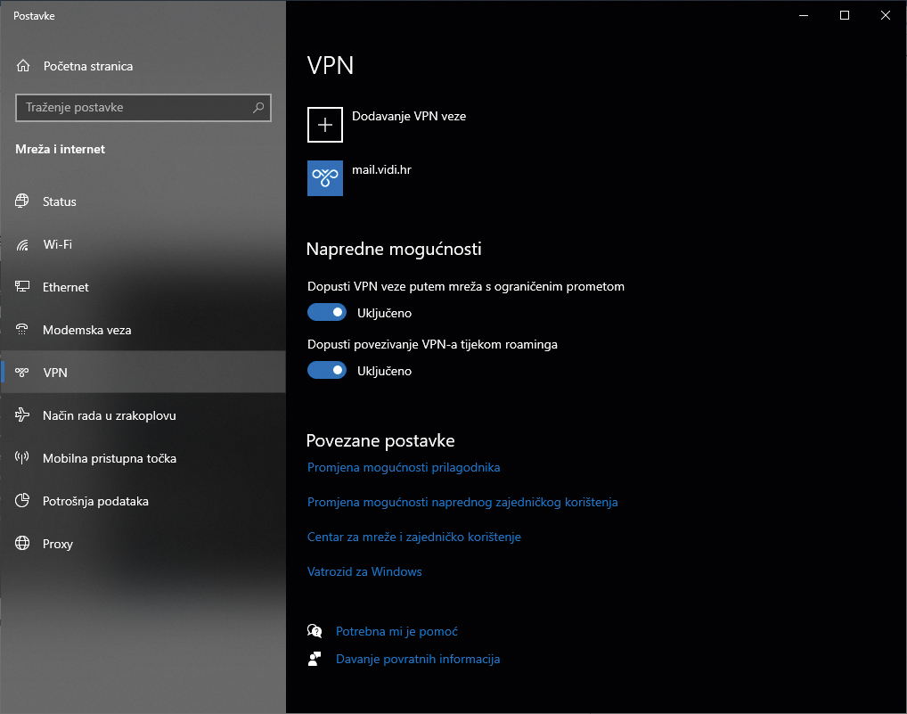 Ako piše da je povezano, to je onda znak da je ostvarena veza prema VPN mreži. Sada možete koristiti sve mrežne resurse iz ureda (mrežne diskove, printere i drugo). Pripazite da ne isprintate nešto na printere u uredu jer to nema smisla.
