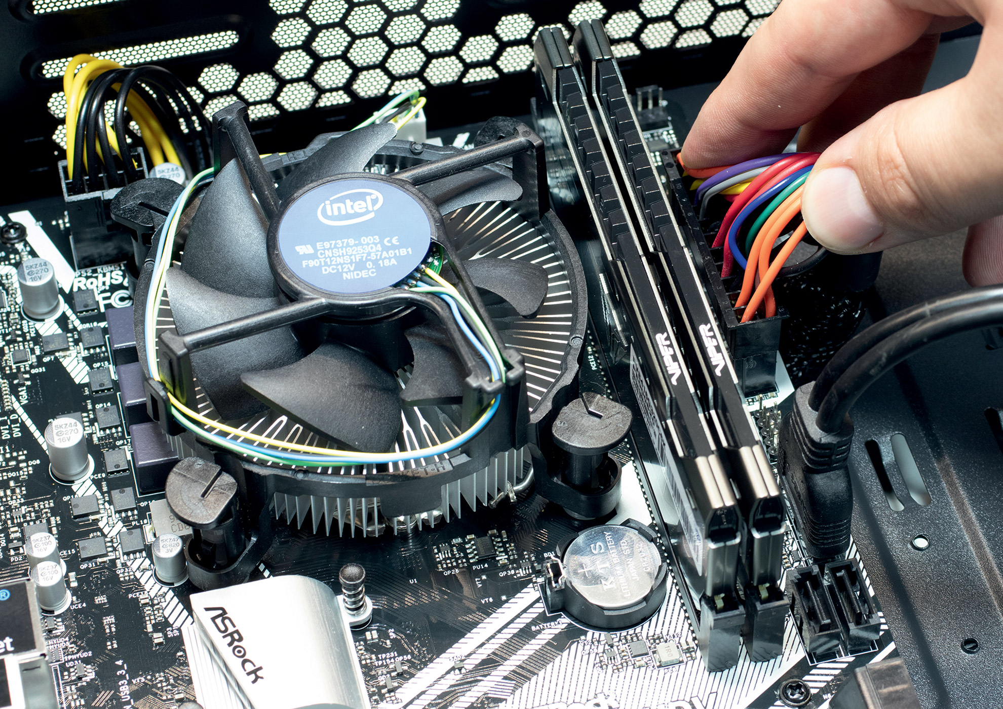 Slaganje sustava, osim nedostatka prostora za provlačenje nekih žica je vrlo jednostavno zahvaljujući prostranom interijeru. Prvo na ploču instalirajte procesor kao i hladnjak od Intela. Termalna pasta već je nanesena te hladnjak samo trebate pritisnuti na procesor te zatim pritisnuti svaku kopču hladnjaka dok ne škljocne. Radite ih po dijagonali kako bi procesor bio dobro učvršćen. Nakon toga slobodno instalirajte M.2 disk kao i RAM pločice.