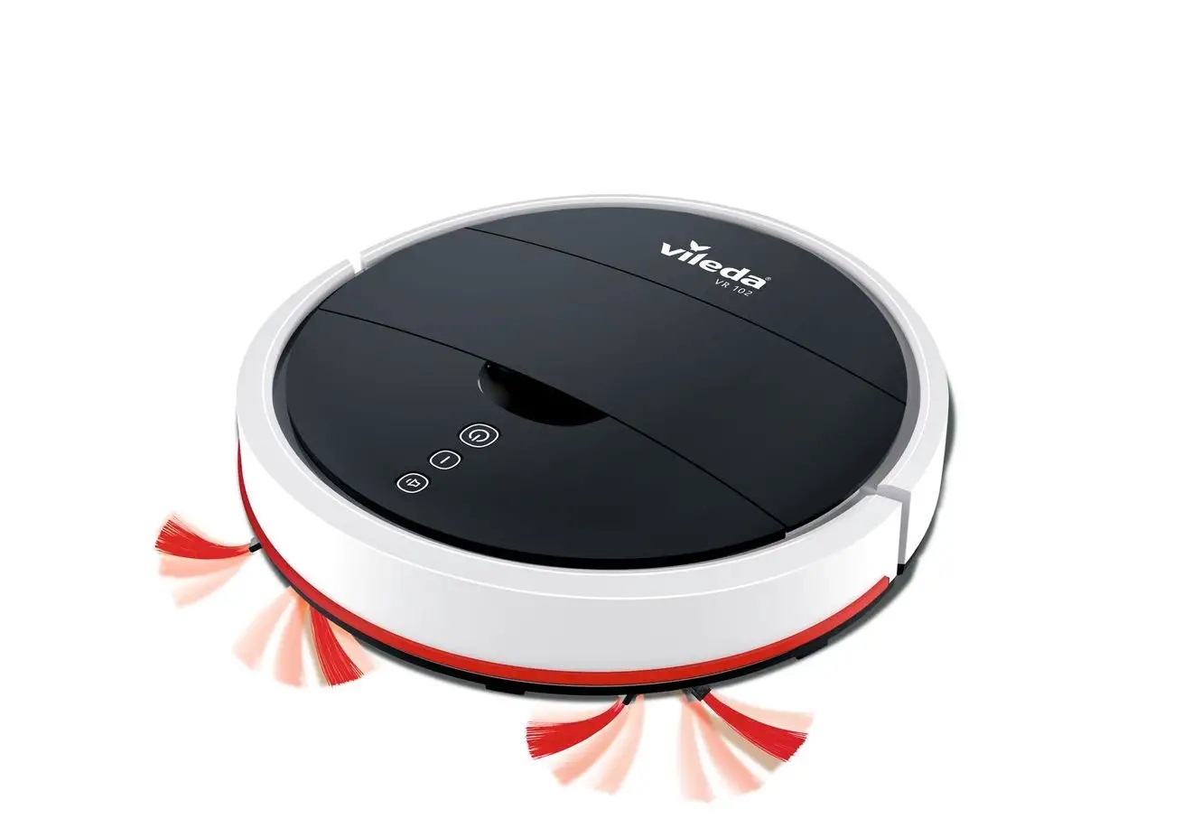 Još jedan od iznimno pristupačnih modela dolazi iz tvrtke specijalizirane za čistače podova. Njihov osnovni model nudi 90 minuta usisavanja u jednom prolazu, a radi u tri načina rada: spiralnom, cik-cak i automatskom. Budući da nema napredne senzore za navigaciju, po prostoru se kreće nasumičnim načinom. Na svom obrubu ima odbojnike koji absorbiraju udarce. Vileda VR 102 može prelaziti preko rubova tanjih tepiha i tepisona, pogodan je za parkete i pločice, ali ne i deblje tepihe. Može savladati pragove visine 1,5 cm. Njegove su prednosti velika posuda za prašinu od 500 ml i veći usisni otvor, pa nešto brže prolazi kroz prostor. Uz tipku za paljenje Vileda nudi i tihi mod rada ispod 60 db. Usisavač nema bazu, već se puni putem punjača sličnog onima za mobilne telefone.