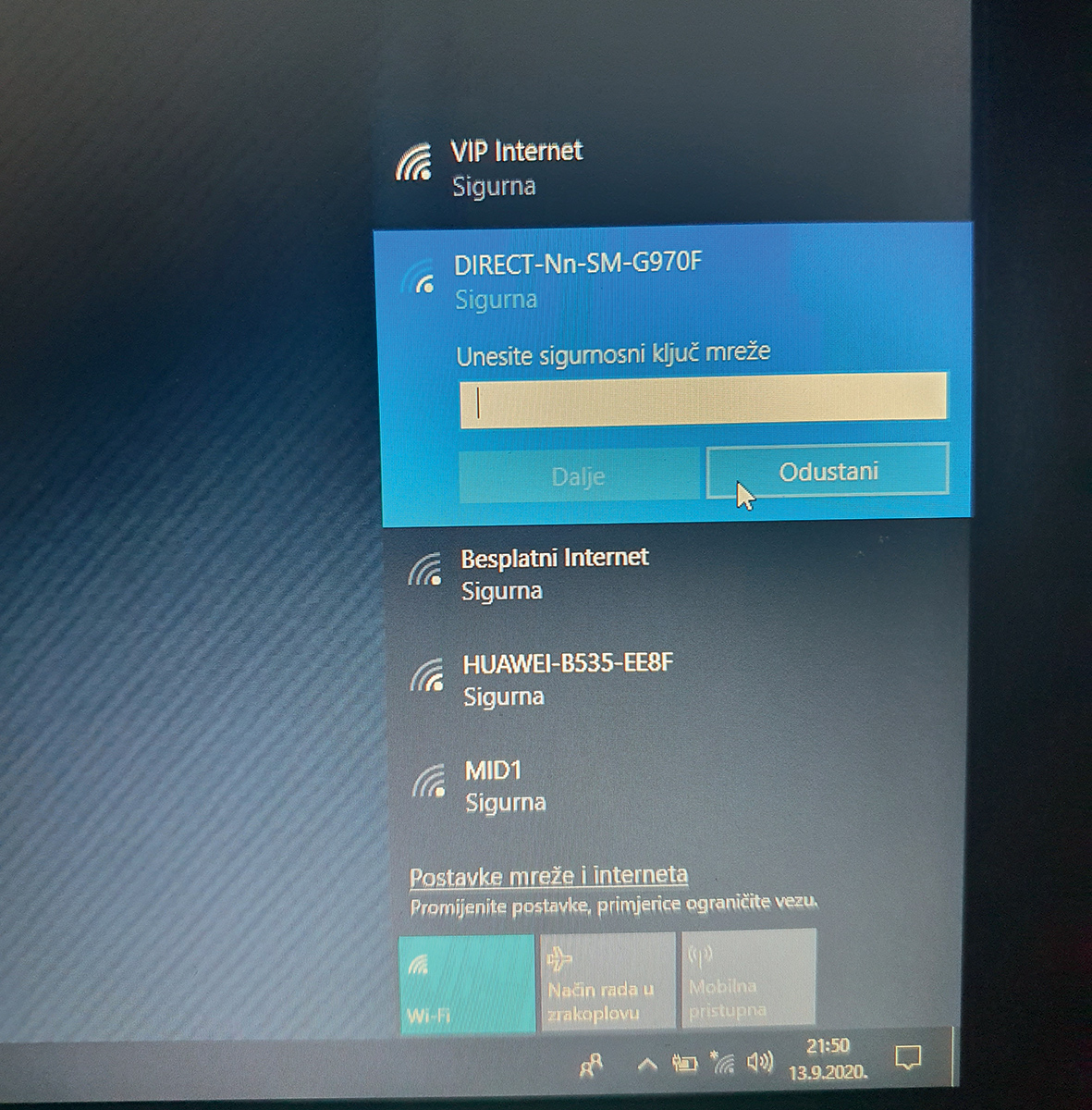 Kako podesiti Wi-Fi Direct (Win 10 + Android)