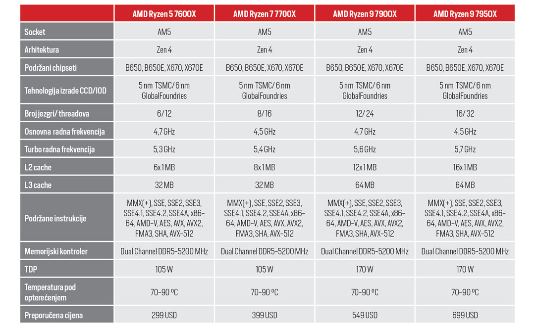 Najnovija generacija AMD-ovih procesora uključuje četiri nova modela visokih radnih taktova uz podršku za DDR5.