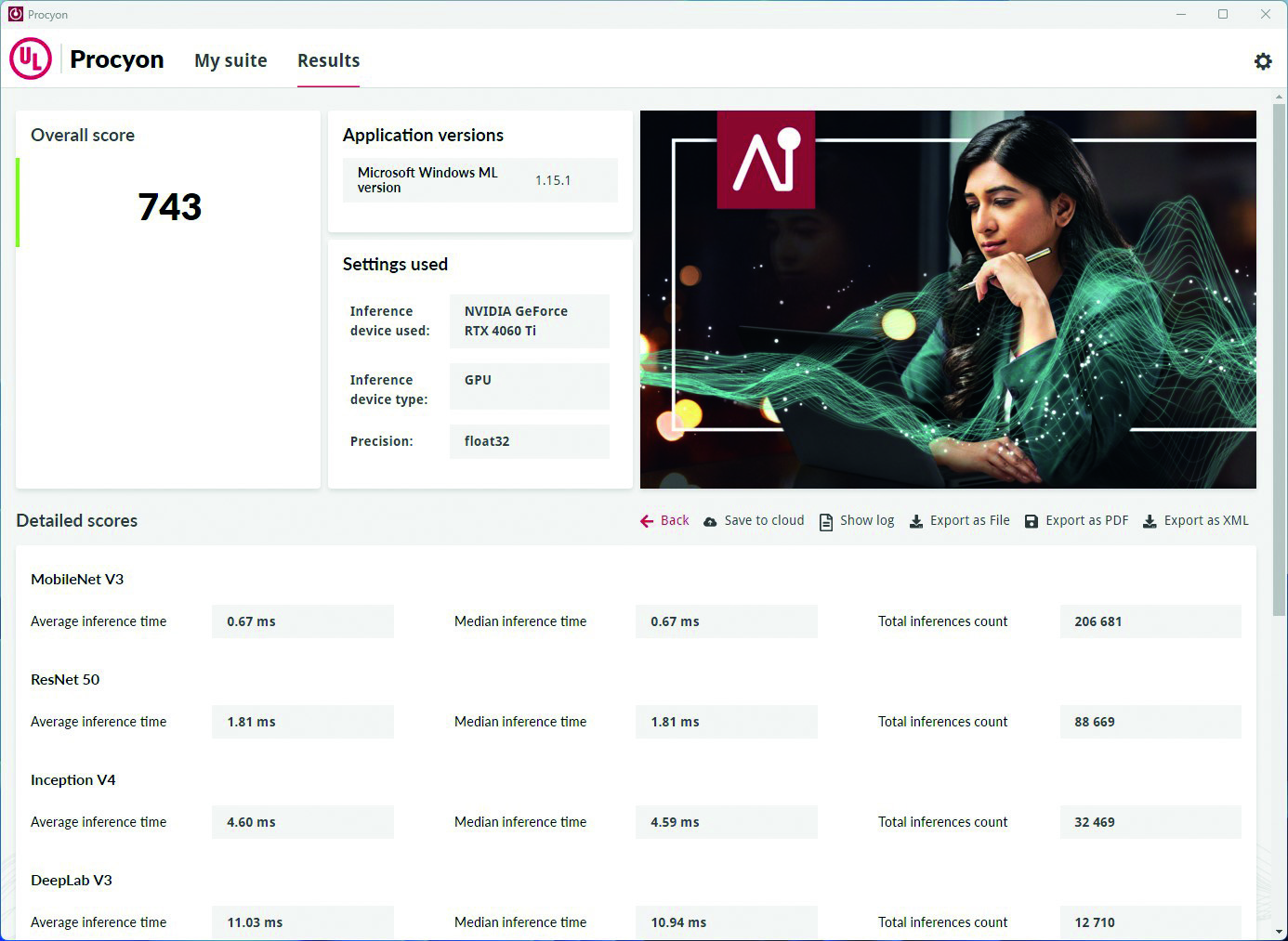 AI Inference Benchmark namijenjen je testiranju AI performansi procesora i grafičkih kartica pod Windowsima, a dio je Procyon softverskog paketa koji je razvila tvrtka UL