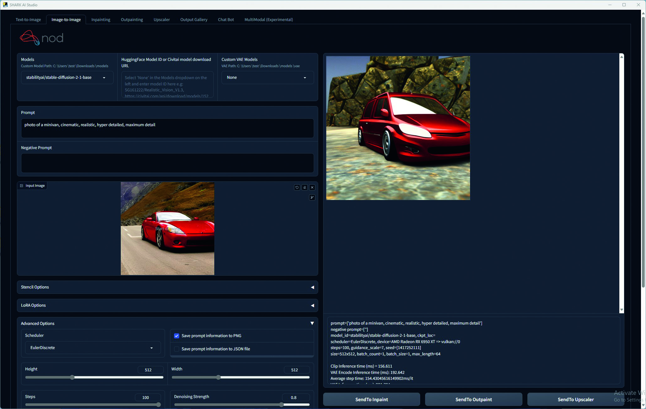 Za AMD-ovu karticu smo pak koristili nod-AI SHARK, dostupan na ovom web linku: https://github.com/nod-ai/SHARK. Instalacija je također prilično jednostavna i brza nakon što pokrenete odgovarajuću .exe datoteku. Nod-AI Shark daje puno bolje rezultate s AMD-ovim karticama u Stable Diffusionu.