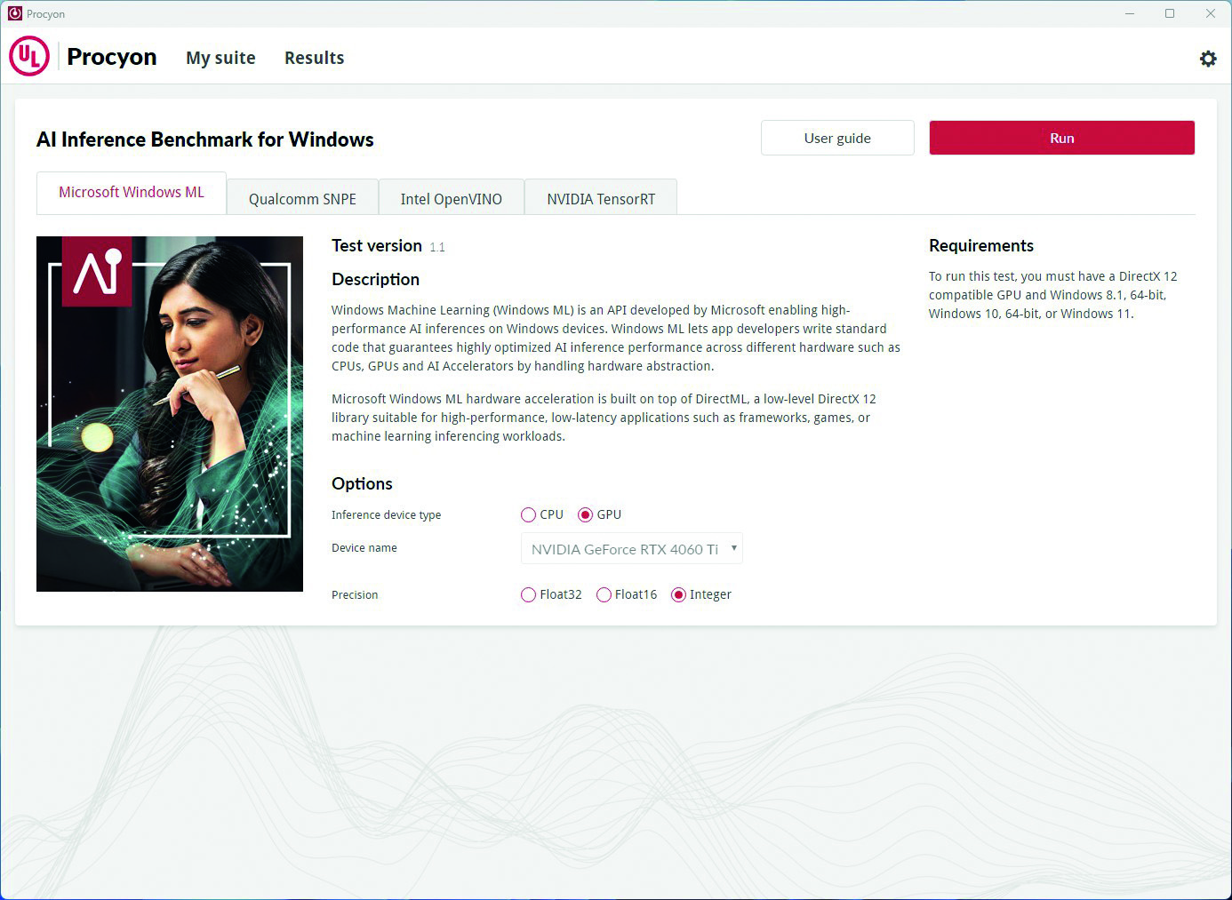 UL-ov Procyon set benchmark alata ponajprije je namijenjen poslovnim i profesionalnim korisnicima. AI Inference benchmark je dostupan u verziji za Android uređaje, te u varijanti koja radi pod Windowsom koju smo mi koristili. Trenutno je jedan od rijetkih ovakvih alata, ako ne i jedini, koji na jednostavan način omogućuje mjerenje i procjenu AI performansi modernog računala.