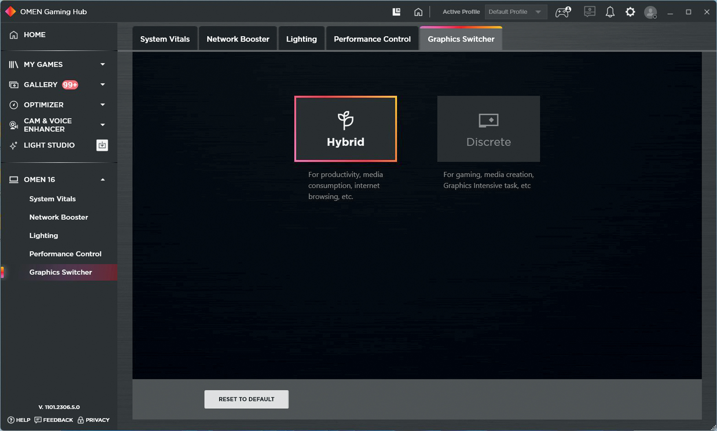 Testirani HP-ov Omen 16 posjeduje tzv. Mux sklopku, odnosno mogućnost korištenja isključivo zasebne Nvidijine grafičke kartice. Ova opcija se nalazi unutar Omen Gaming Huba