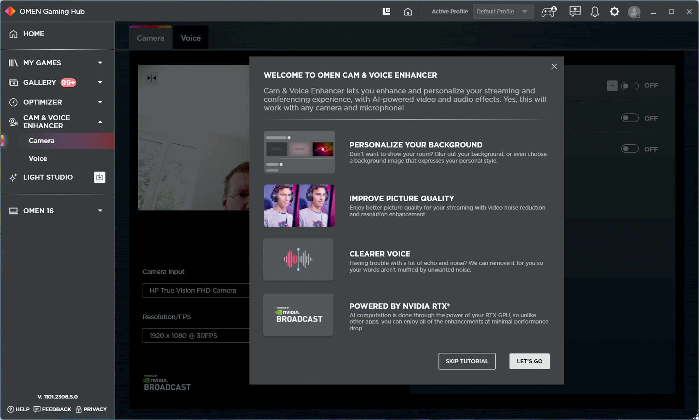 Posebna opcija unutar Omen Gaming Huba omogućuje napredne efekte i poboljšanje kvalitete slike kamere za potrebe streaminga videa ili video konferencije
