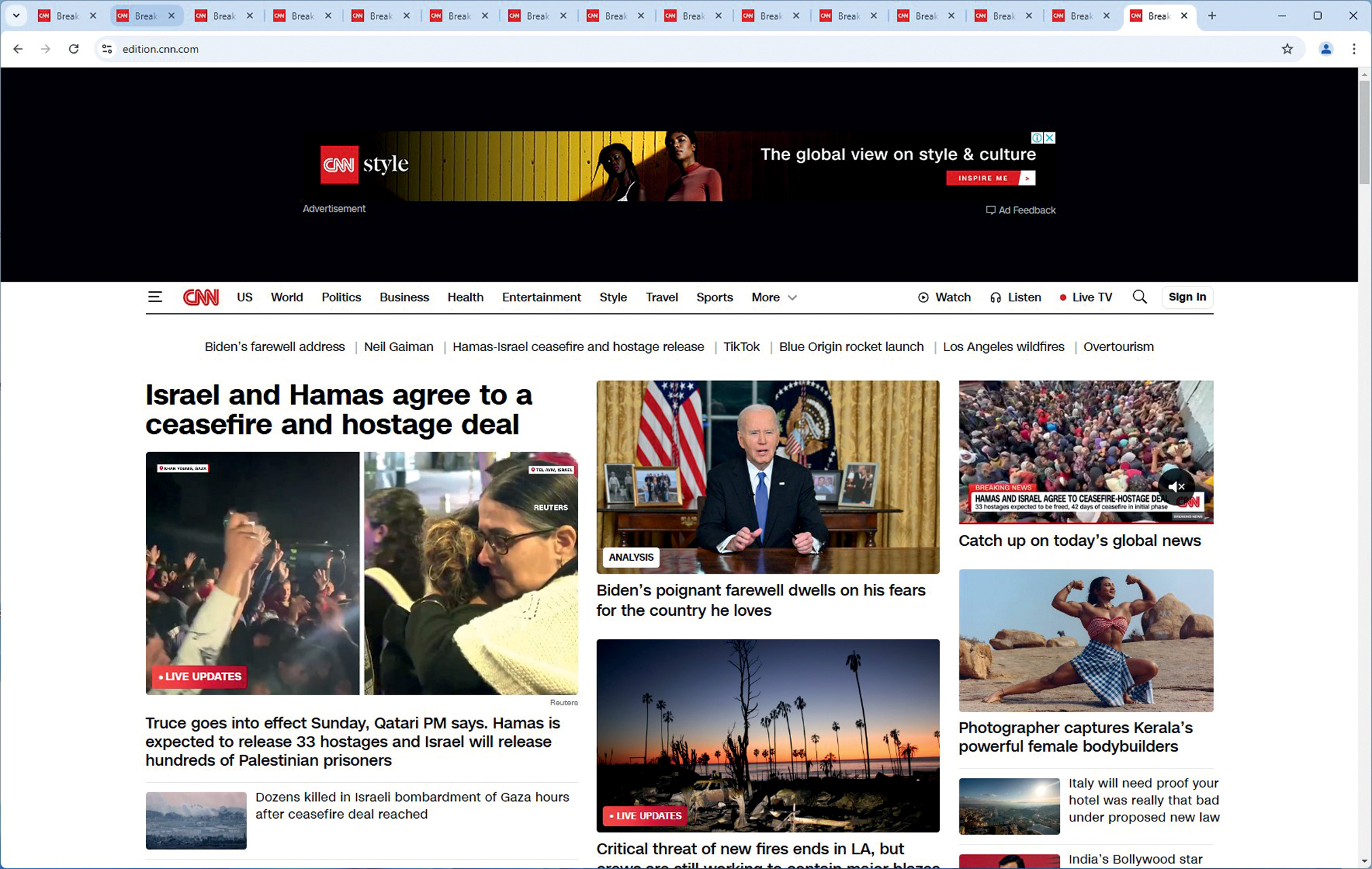 Za testiranje memorija u stvarnom radu koristili smo Chrome unutar kojeg smo otvorili 15 tabova s određenom web stranicom