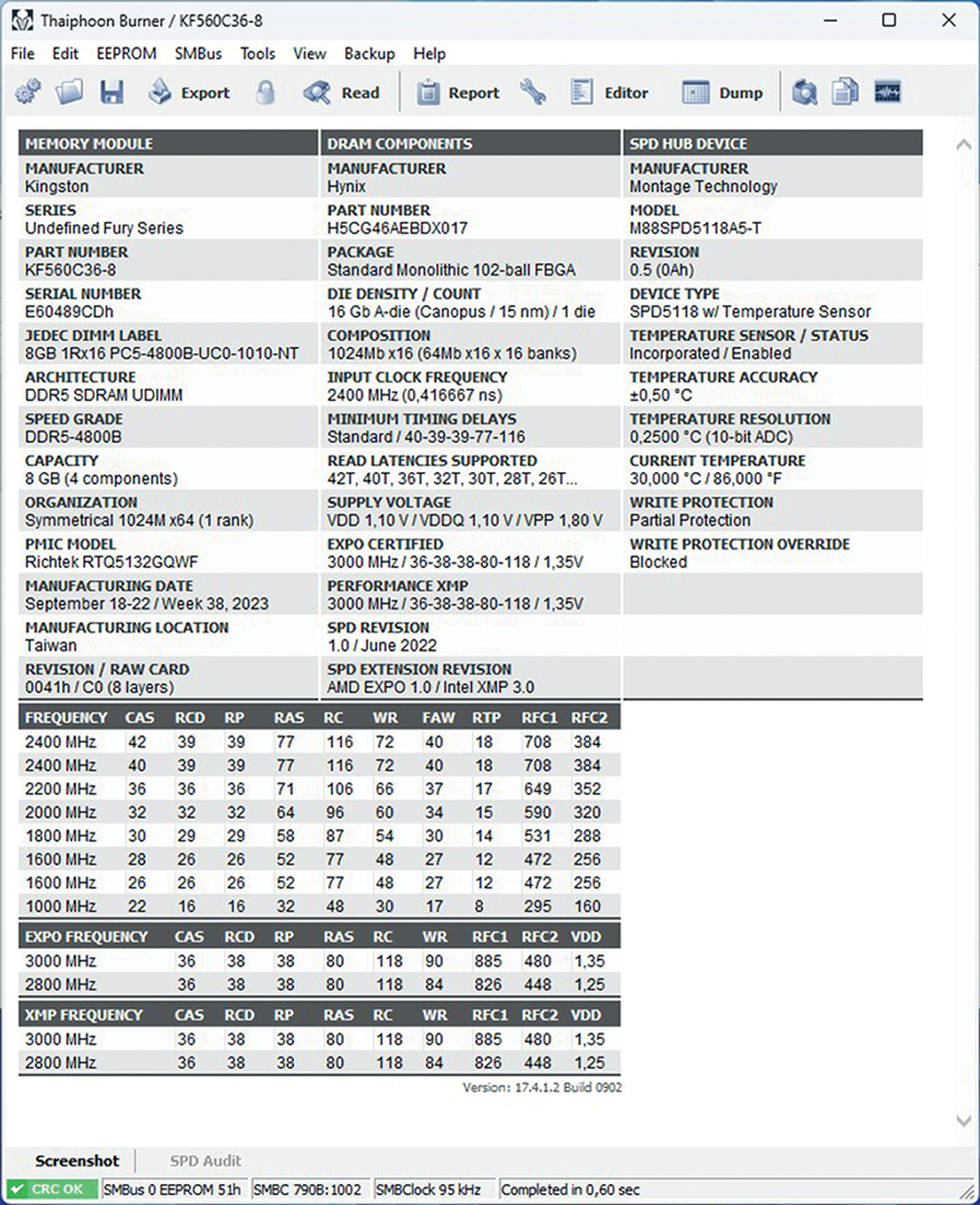 Testirani 16 GB memorijski kit dolazi s dva 8 GB modula namijenjena radu u dual channel konfiguraciji, temelji se na Hynixovim čipovima, a deklarirana brzina rada mu iznosi 6.000 MHz