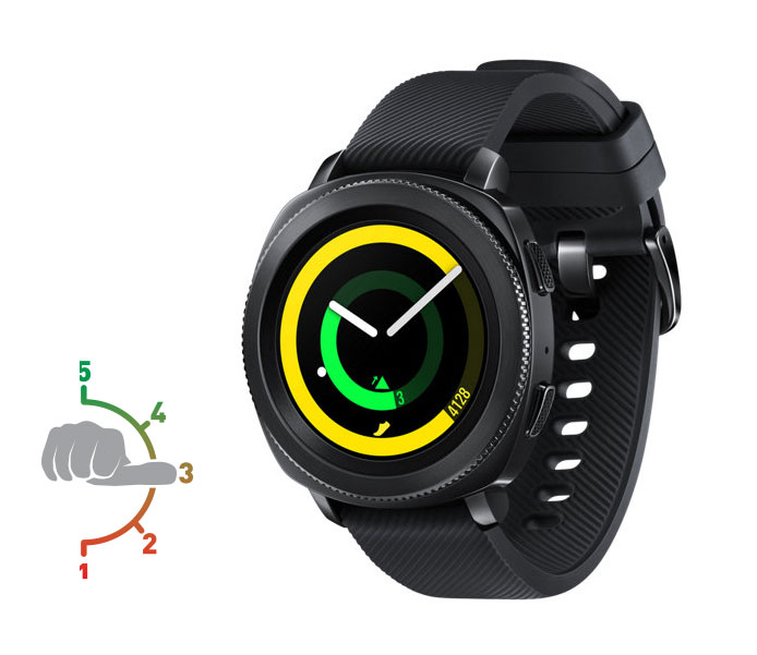 Za: Samsung Galaxy Gear Sport je najnoviji spin-off Samsungove serije pametnih satova. Tizen OS i rotirajući okvir stvaraju posebno korisničko iskustvo, a ekran sa Super AMOLED tehnologijom i Gorilla Glass 3 zaštitom dobro podnosi sunce. Gear Sport podržava više od 50 vježbi na standardnoj aplikaciji, između ostalih i plivanje. Sat je vodootporan do 5 ATM-a te može mjeriti otkucaje srca u vodi. Na sat direktno možete upisati broj kalorija koje ste konzumirali. Plaćanje Samsung Payem te primanje i odgovaranje na pametne obavijesti također je omogućeno. Baterija traje do 4 dana.