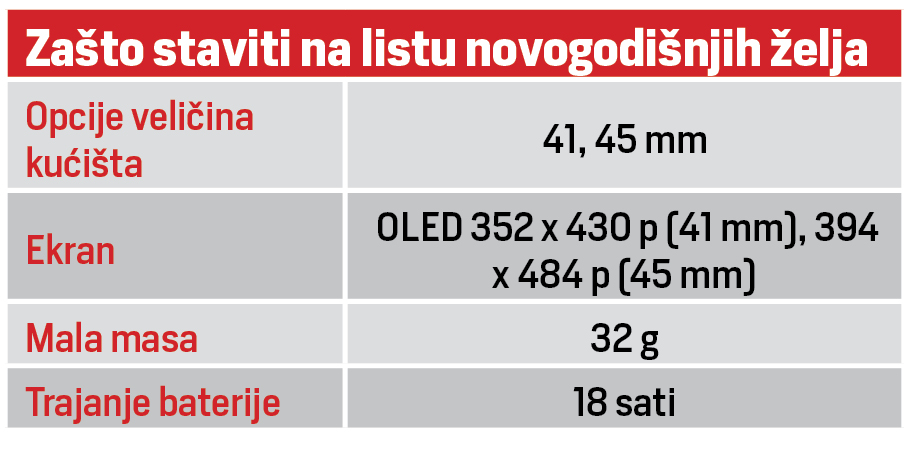 Odličan dizajn, veliki ekran te nadogradnja na već ionako bogat set mogućnosti prethodnika glavne su prednosti ovog, po mnogima, ponajboljeg pametnog sata na tržištu. Kao glavni minus možemo istaknuti kratko trajanje baterije, no ono se sad uz uključivanje Low Power moda može produljiti na 36 sati.