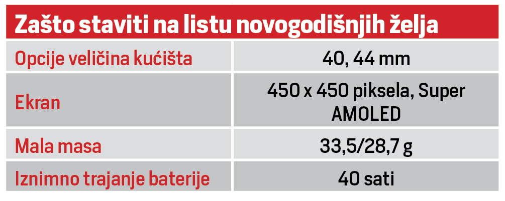 Ponajbolji pametni sat za Android korisnike stiže iz Samsunga. U svojoj petoj generaciji, korejski je proizvođač ojačao staklo koje je sada otpornije na ogrebotine. Tu je novi senzor za toplinu kože i sat se može podičiti duljim trajanjem baterije u odnosu na prethodnika.