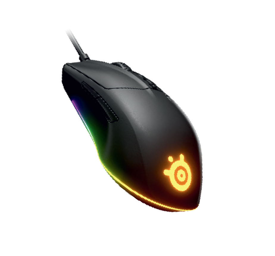 Za: Ovaj žičani miš za tradicionalne gejmere ipak donosi i dašak blještavila s RGB detaljima na logotipu proizvođača te na samom dnu miša. Entry level gejmerski miš od poznatog proizvođača gaming periferije SteelSeriesa je vizualno jednostavan, ali udoban miš koji je nominalno izrađen za dešnjake. Međutim, zahvaljujući njegovu simetričnom dizajnu, smatramo da ni ljevaci neće imati problema s igranjem. Jedini nedostatak će im biti činjenica da će vrlo teško moći koristiti dvije tipke na lijevoj strani miša, a koje dešnjaci vrlo lako mogu pritisnuti palcem u žaru borbe. Ovaj miš obično biraju igrači sa Claw (kandža) ili Fingertip (vršci prstiju) stilom držanja miša.