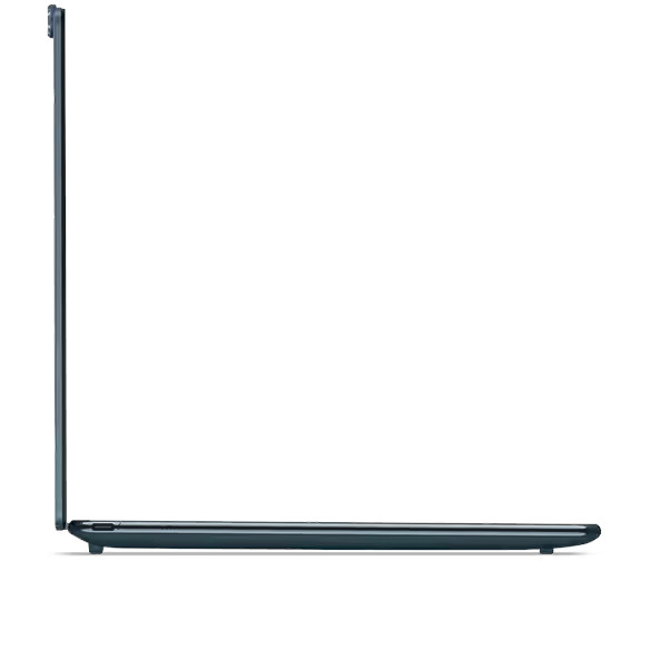 I sama izvedba laptopa je premium, pa je tako aluminijski poklopac ekrana prekriven staklom, a ostatak laganog i omalenog ultraprijenosnika ima aluminijsko kućište. Dodatno smanjenje dimenzija omogućeno je vrlo tankim rubom oko ekrana gdje u igru ponovno dolazi web kamera ispod ekran. Ono što možda nije na razini skupog segmenta je opremljenost. Iako ima najnovije mrežne standarde u vidu Wi-Fi 7 i Bluetooth 5.4 podrške, kod priključaka imamo samo dva Thunderbolt 4 porta, a čak nema niti 3,5 mm utora za slušalice. Procjena Lenova je da većina novih slušalica ima Bluetooth tehnologiju, a uz to je laptop opremio kvalitetnim stereo zvučnicima koji rade uz pomoć dva dodatna woofera.