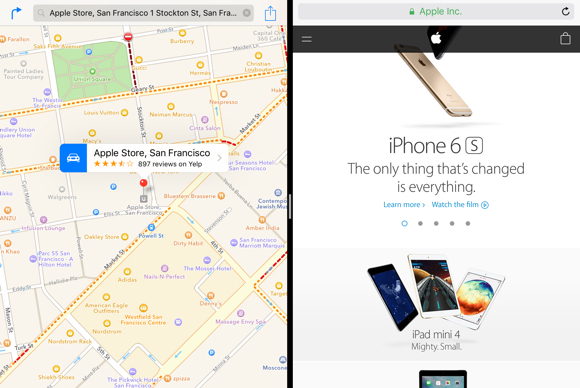 Split View je Appleov naziv za tradicionalnu splitscreen funkciju pomoću koje možete simultano koristiti dvije aplikacije na ekranu, što omogućuje iOS 9. Ova mogućnost je nažalost rezarvirana samo za korisnike iPad modela Pro, Air 2 i Mini 4 jer u Appleu ne vjeruju da ista može biti korisna na manjim ekranima, a u slučaju starijih uređaja, vjerojatno ne žele riskirati pad performansi. Uz ručno aktiviranje, Split View se u određenim slučajevima pali automatski. Npr. pritiskom na link povezan uz neku lokaciju unutar Apple Maps aplikacije će otvoriti vezanu web stranicu na desnoj polovici ekrana. Još jedan iOS 9 novitet ekskluzivan za iPad uređaje je mogućnost da svoju tipkovnicu pretvorite u digitalni trackpad polaganjem dva prsta na istu što olakšava brzo odabiranje velike količine teksta.