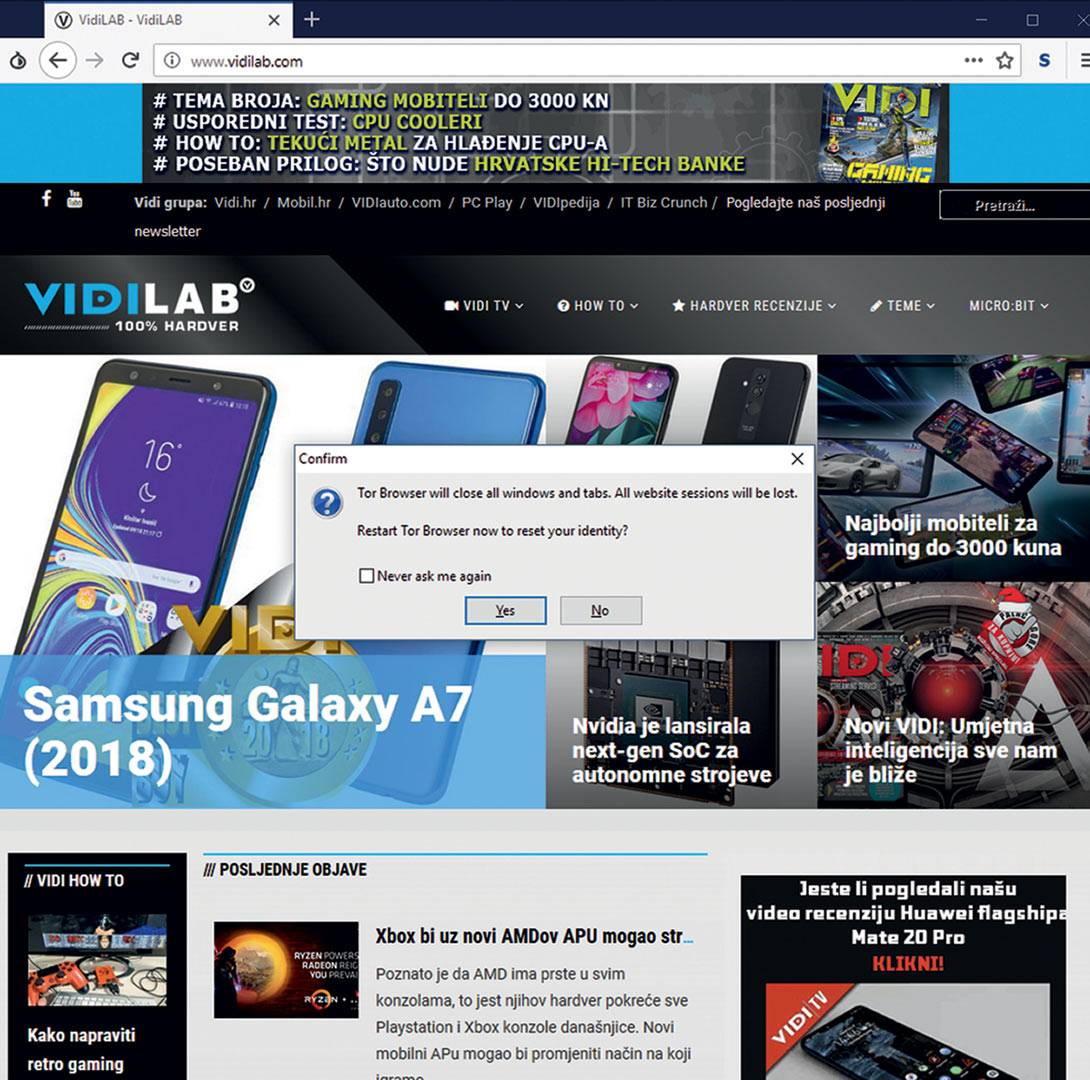 Tor web pretraživač: Jedna od omiljenih opcija nam je stvaranje “novog identiteta”, s kojim svježe možete početi novu seriju pretraživanja. Mana ovog browsera je to što se nekad zna bitno usporiti, a u kombinaciji s DuckDuckGo-om morat ćete biti vrlo specifični kod upisivanja termina za pretragu