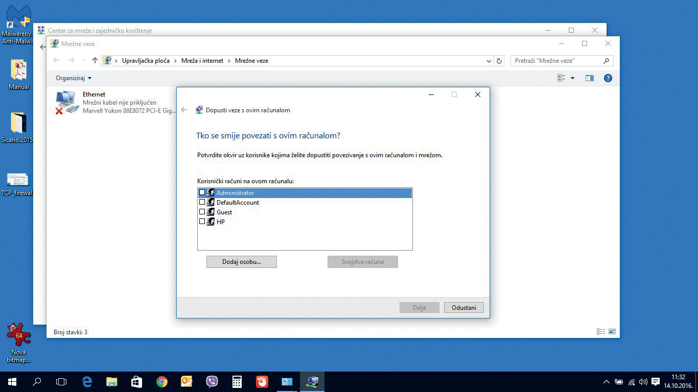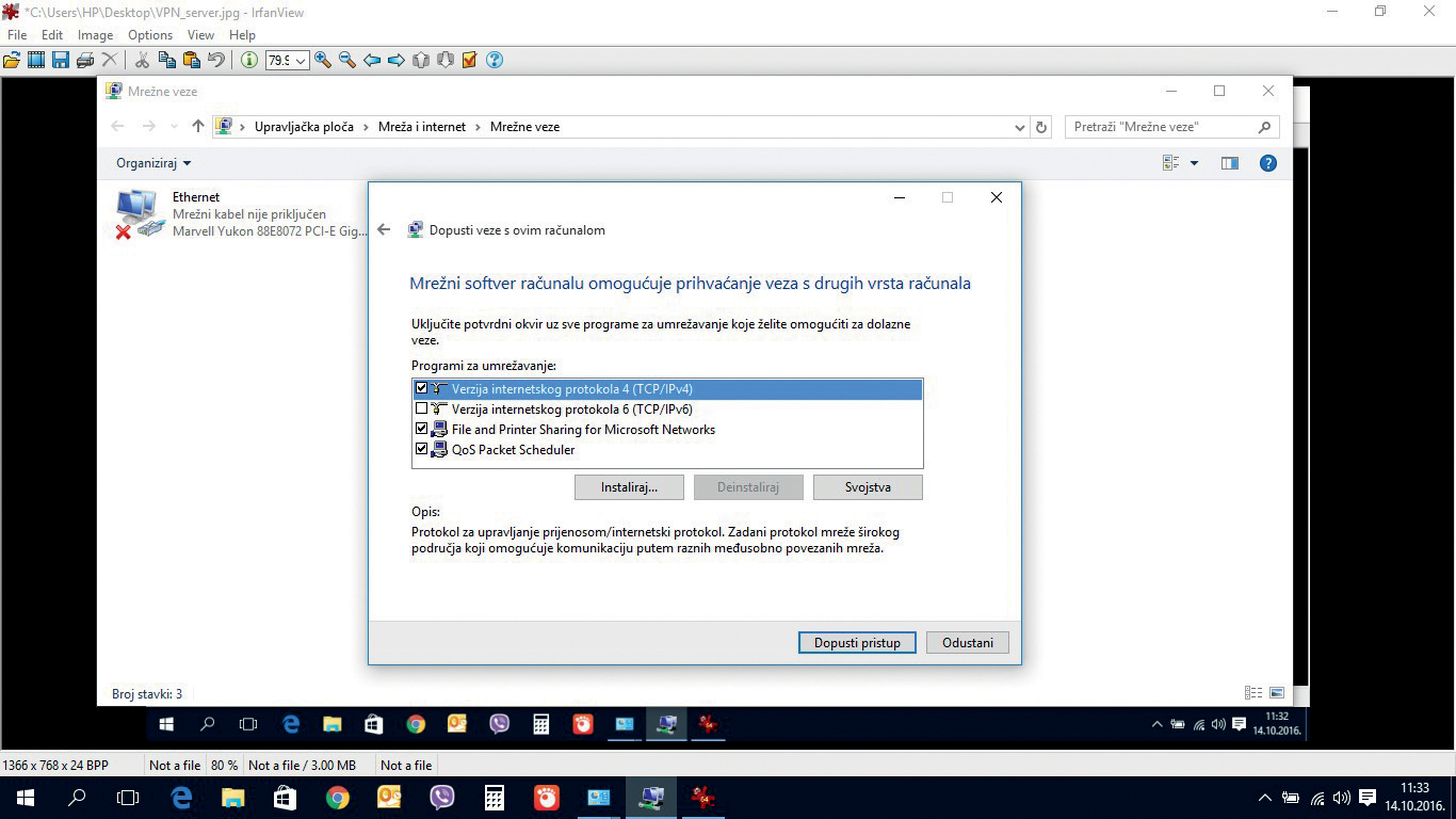 ■ Odabir protokola koji će se koristiti u nadolazećim vezama (TCP/IP4 ili TCP/IP6, File and Printer sharing, ...)