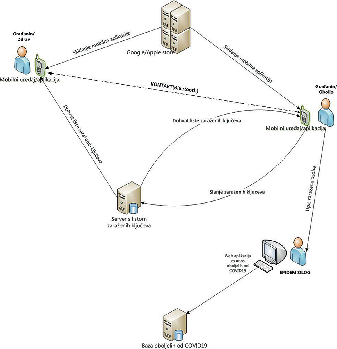 Pritom se bilježe samo kontakti koji zadovoljavaju parametre koje će postaviti epidemiolozi, primjerice udaljenost manja od 1,5 metara i kontakt dulji od 15 minuta. U slučaju da se jednom od korisnika aplikacije dijagnosticira zaraza Covidom-19, sam odlučuje hoće li tu informaciju podijeliti s osobama s kojima je bio u interakciji posljednjih 14 dana.