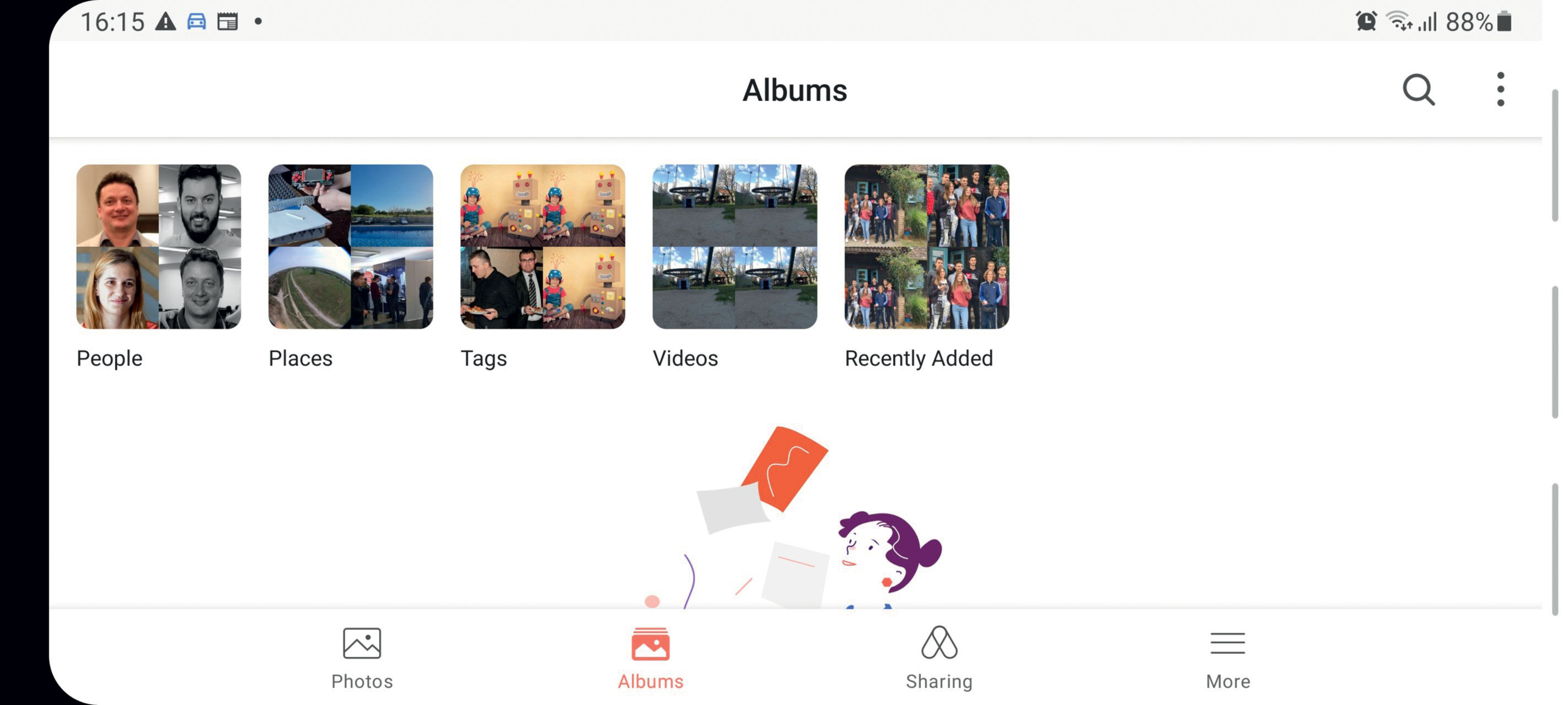 Tako sada možete pregledavati automatski generirane albume grupirane prema prepoznavanju lica, geolokaciji, oznakama, vrstama datoteka te datumu prijenosa. Tako je doista lagano pomoću datuma pronaći fotografije s rođendanskog slavlja ili pomoću geolokacije fotografije s mora.